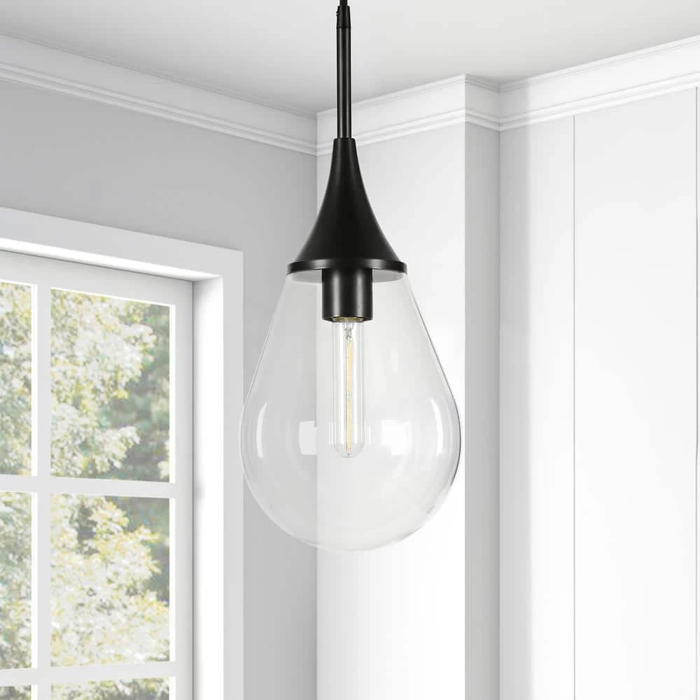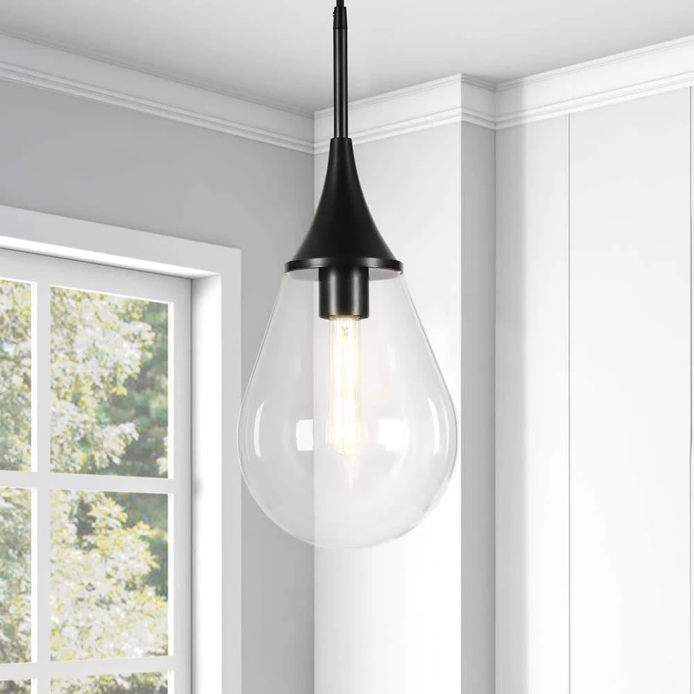 With a style inspired by the industrial revolution but appropriate for a coastal beach house, this pendant brings true mood lighting to your kitchen, dining room or entryway. The glass provides an antiqued look that complements the blackened bronze hardware. The elegant tear drop shaped shade adds refinement to the space.