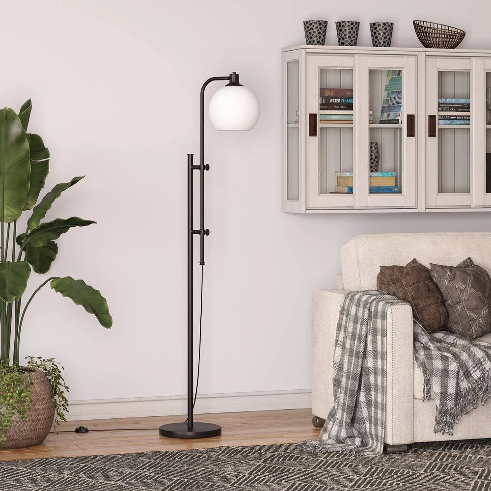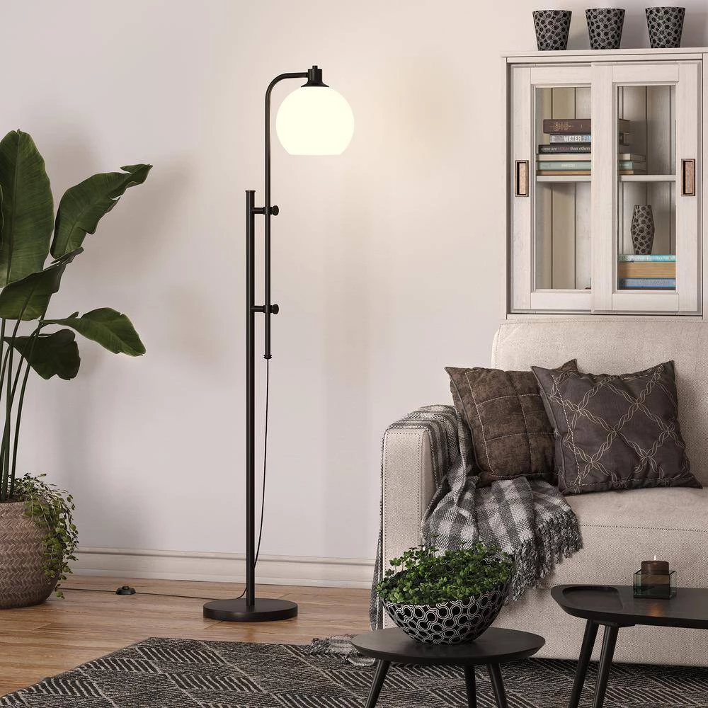 This industrial floor lamp takes notes from factory lighting. It lightens the mood with a white milk glass shade, creating an effortless retro vibe. The height is adjustable from 52.5 in. to 68 in., allowing you to customize the fixture to best suit your space.
