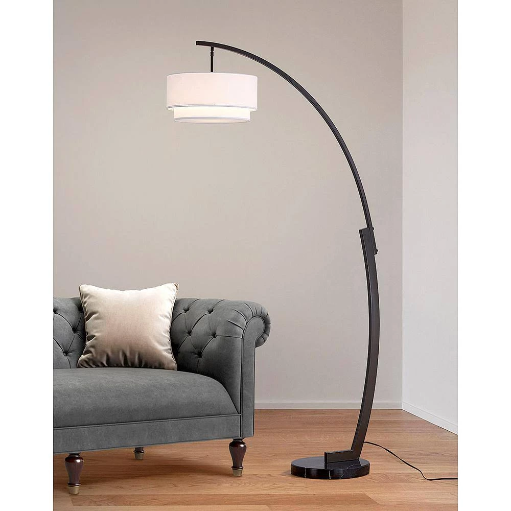 HOMEGLAM design, the Arc lamp collection features big bend metal bold arc on a heavy weighted natural marble base. The lamp design with a rocker on/off switch located on the back of the arch tube. It come with a 16.5 in. double layer lamp shade with detachable light diffuser. The Arc lamp collection from HOMEGLAM brings a stylish perfect additions to light your space with simplicity and style.