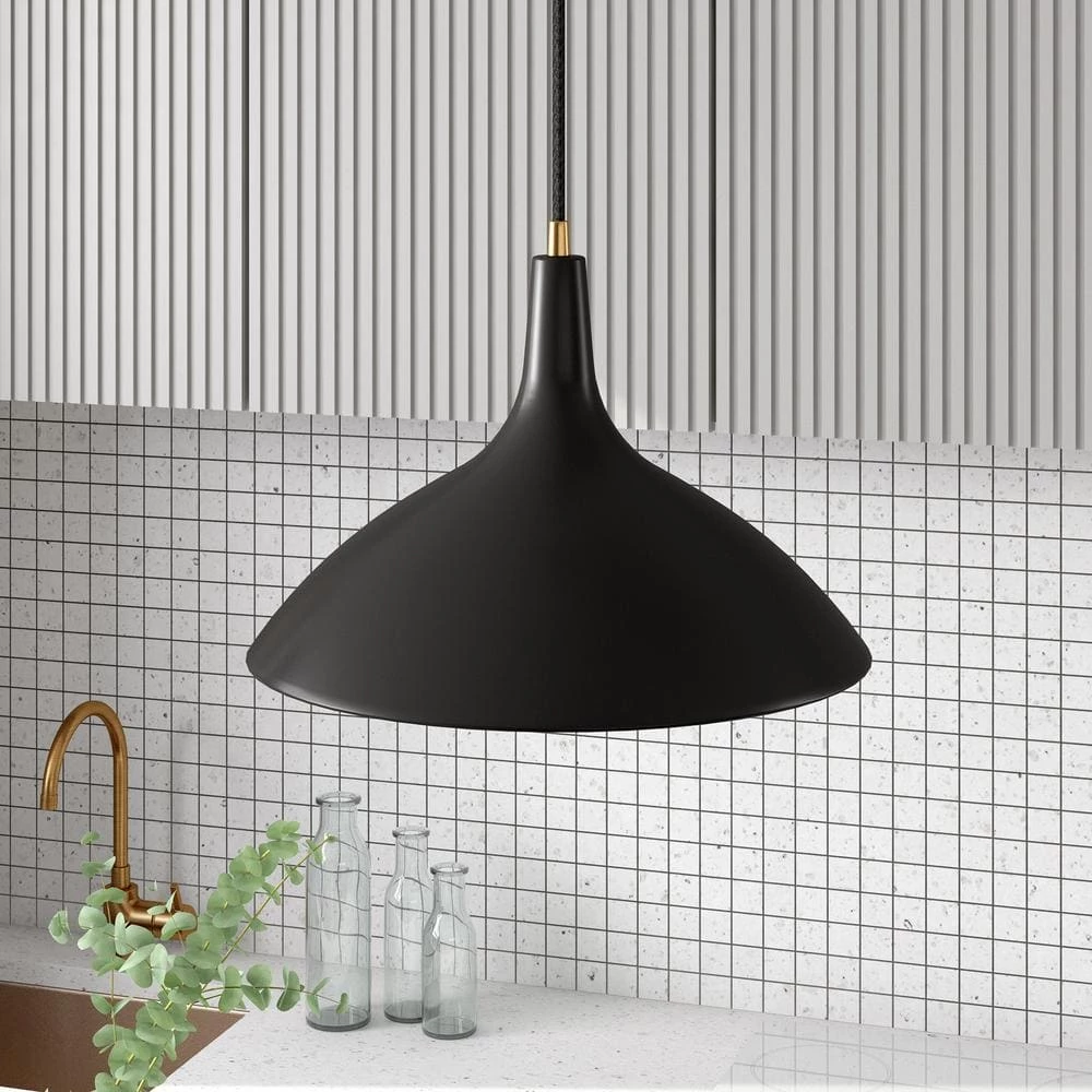 Minimalist mid-century design meets modern Scandinavian chic with this simple, yet dynamic pendant. The wide, stout cone of the metal shade lends an organic feel to the piece while the on-trend neutral finishes blend easily into any color palette. The 8 ft. adjustable cord lets you customize this fixture to fit your space perfectly.