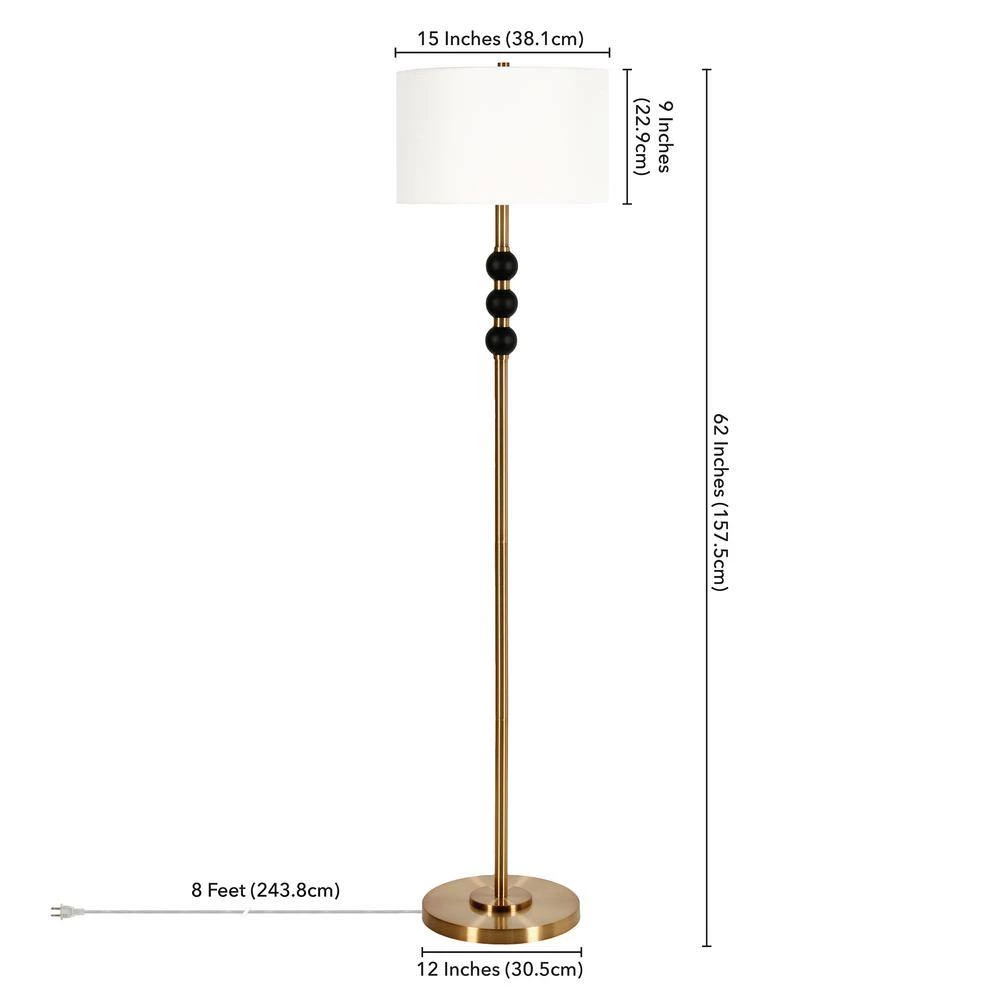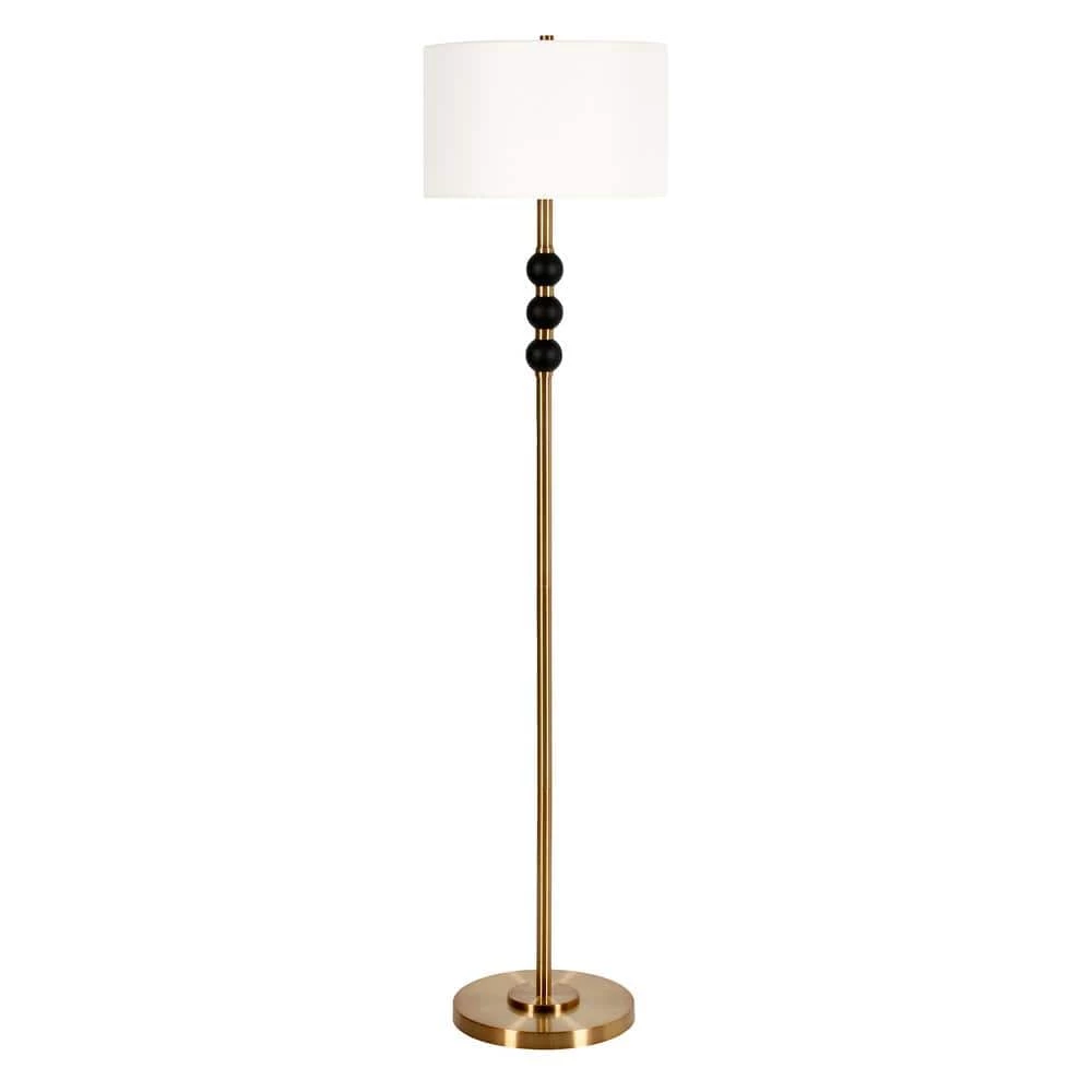 Live your glam Art Deco fantasy with this 2-toned floor lamp. This updated classic features stacked ball accents beneath the crisp drum shade, adding a sculptural element while keeping the design streamlined and chic. The brass base and contrasting black accents create a warm neutral look that pairs easily with many color schemes and decor inspirations.