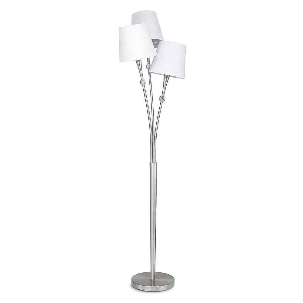 HOMEGLAM design. The Blossom lamp collection feature crystal ball decorated 3 branched lights. The 68 in. H Lamp is strong metal constructed with steady weighted base. Each lamp arm can be turned to wanted position. The lamp designed with inline foot on/off switch and 3 9 in. ΓΈ cone shaped linen shades. The Blossom lamp collection from HOMEGLAM brings stylish and luxury illuminating statement to your contemporary homes.
