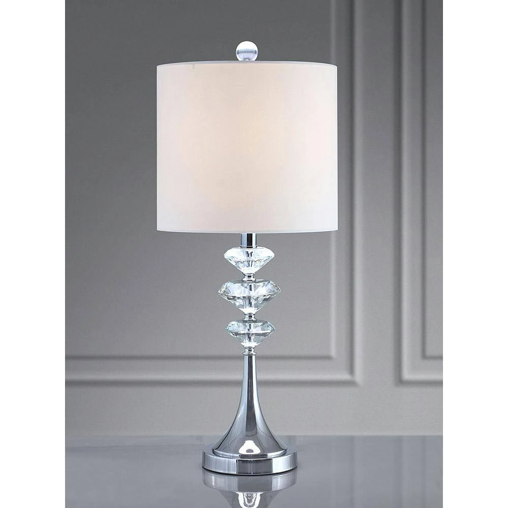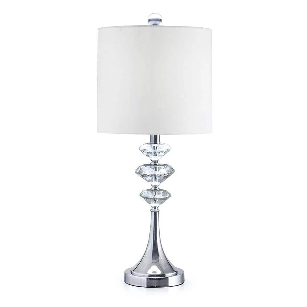 HOMEGLAM design, the Brillante lamp collection features stack of 3 solid diamond cut crystals glass. The 26 in. H table lamp is chrome finish metal constructed with steady weighted base. The light is controlled with a socket on/off rotary switch with 11 in. white linen drum lamp shade. The Brilliant lamp collection from HOMEGLAM brings stylish and luxury illuminating statement to your contemporary homes.
