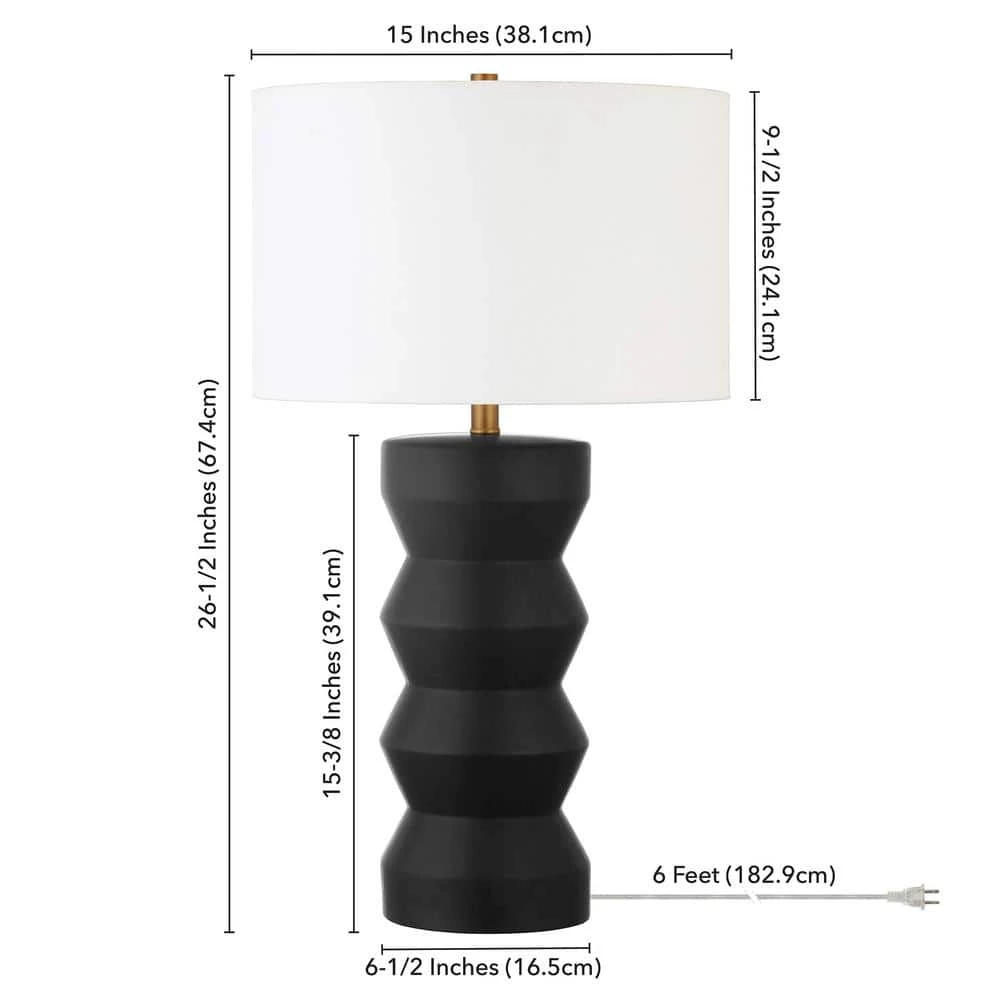 Add a touch of textured style to your living room, bedside, or den with this contemporary table lamp. It features a ribbed ceramic base finished with a matte exterior in a neutral tone to suit any color scheme. The fixture is topped off with a crisp white linen drum shade that perfectly complements the soft curves featured in the design.