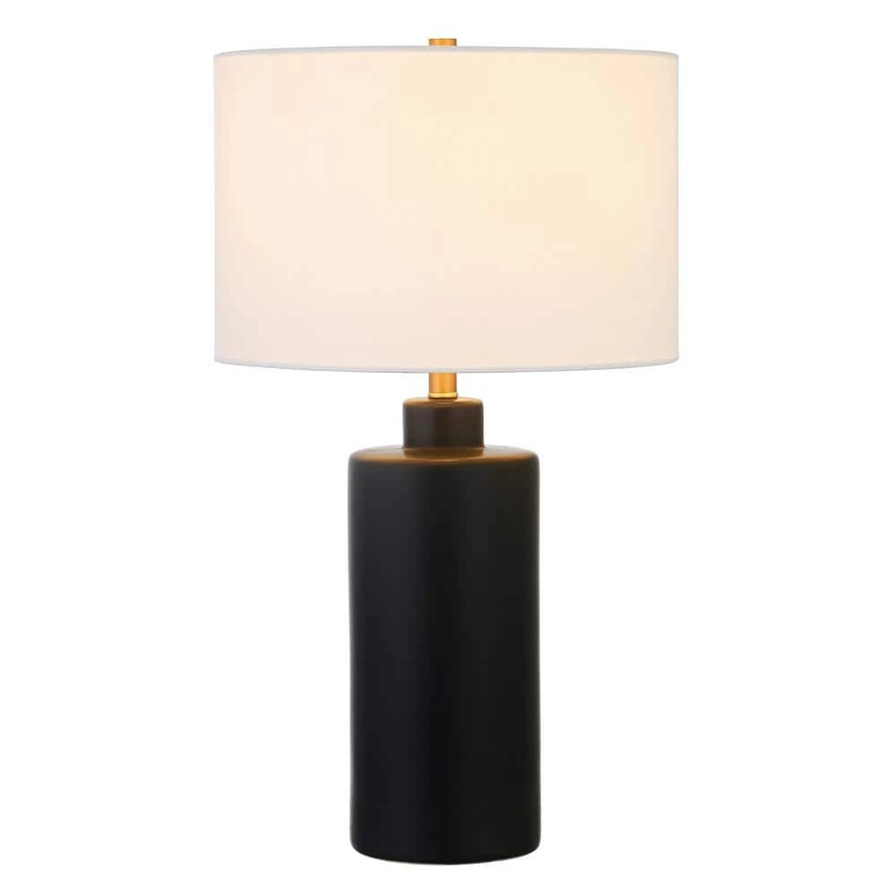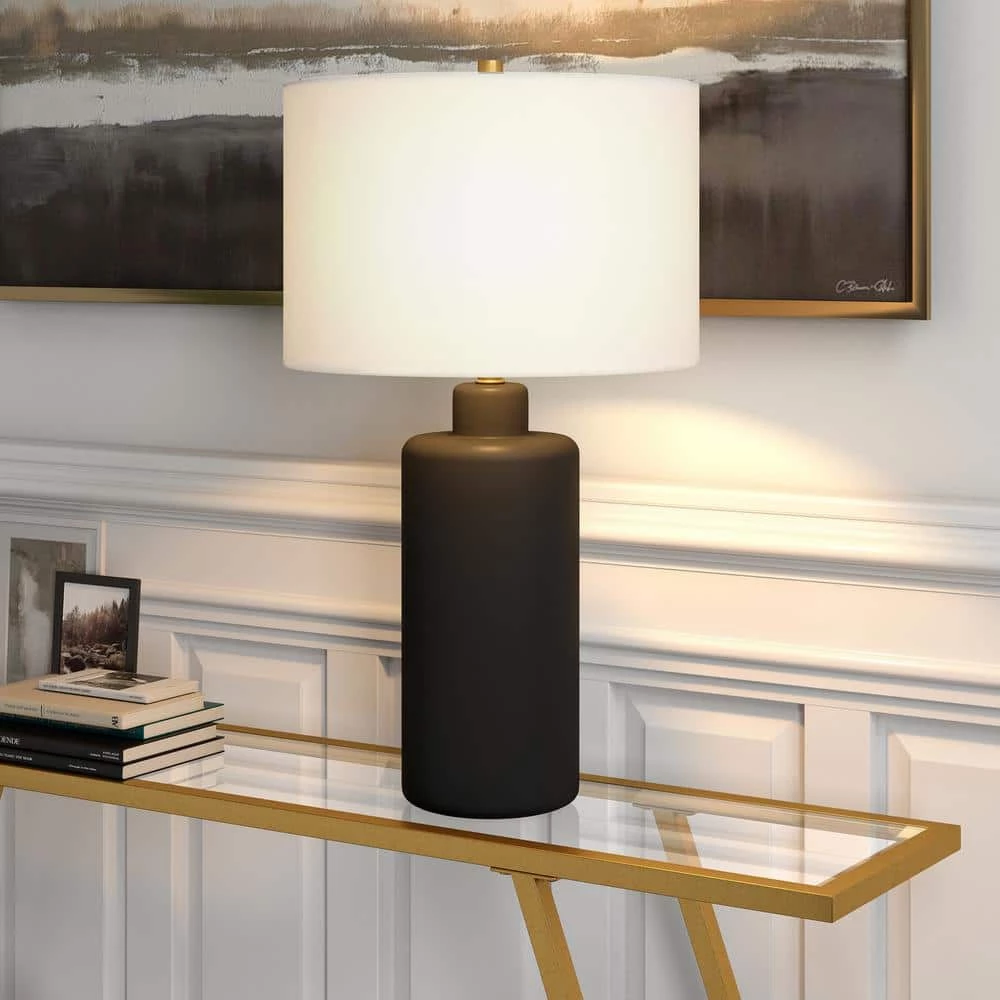 Add a touch of understated traditional style to your living room, bedside, or den with this contemporary table lamp. It features a substantial ceramic base finished with a matte exterior in a neutral tone to suit any color scheme. The fixture is topped off with a crisp white linen drum shade that perfectly complements the soft curves featured in the design.