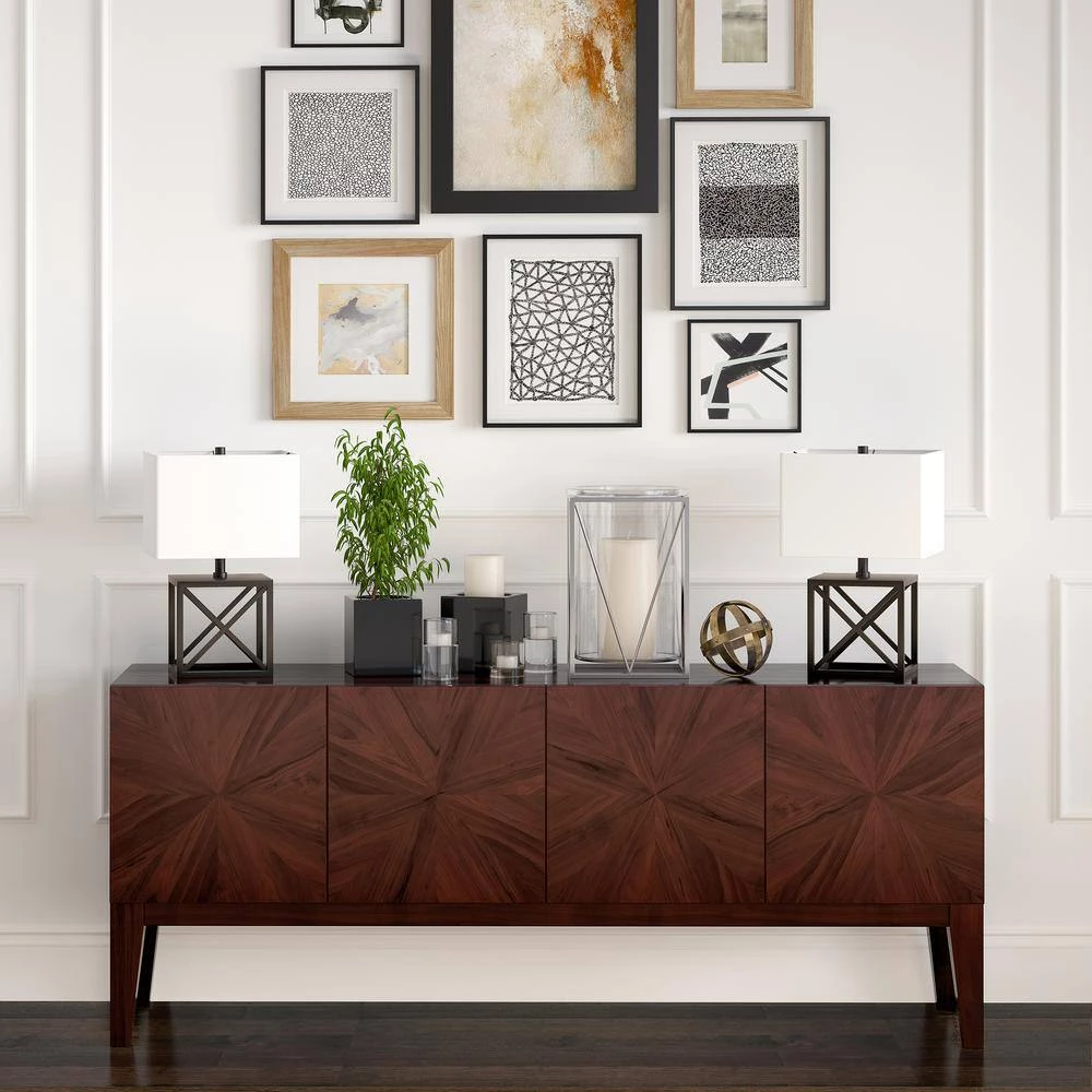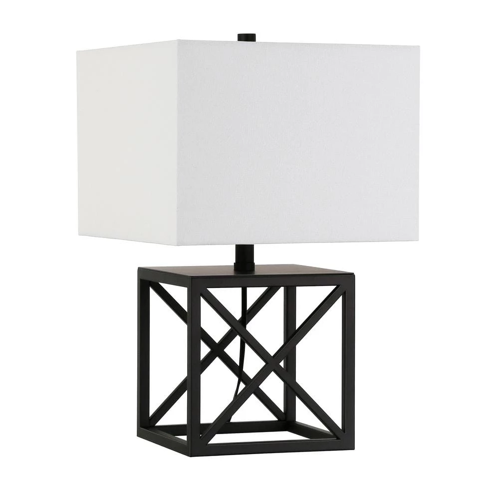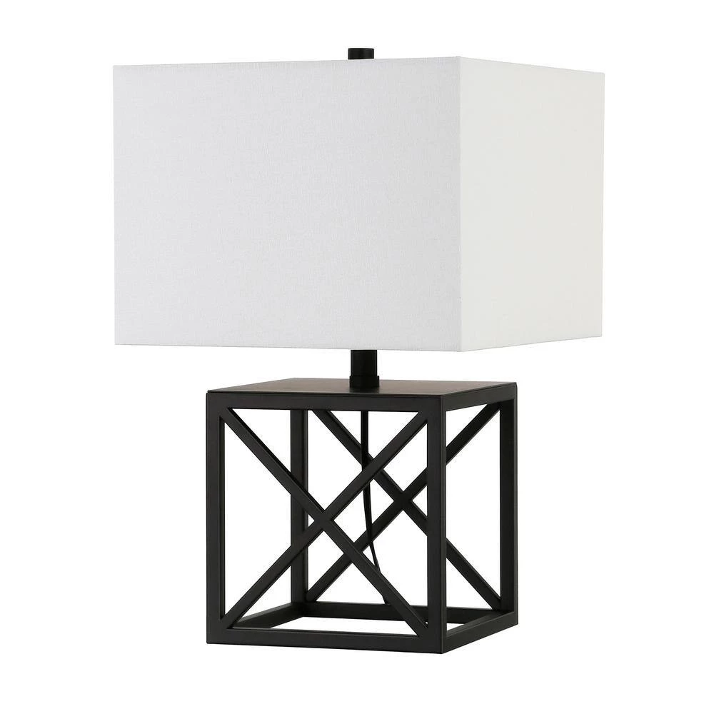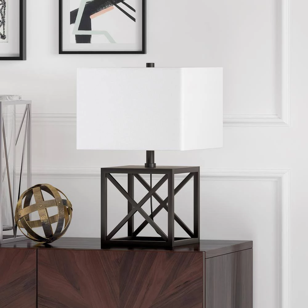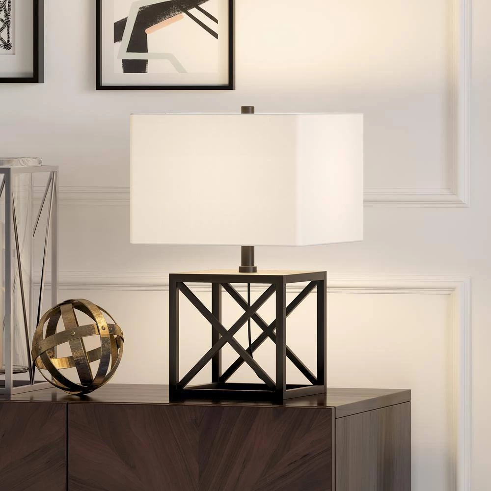 Complete your modern farmhouse living room or bedroom with this modern, yet whimsical table lamp. Its square base features a crisscross design finished in blackened bronze, bringing visual interest to the piece without weighing it down. Its square shade creates a crisp, polished silhouette.