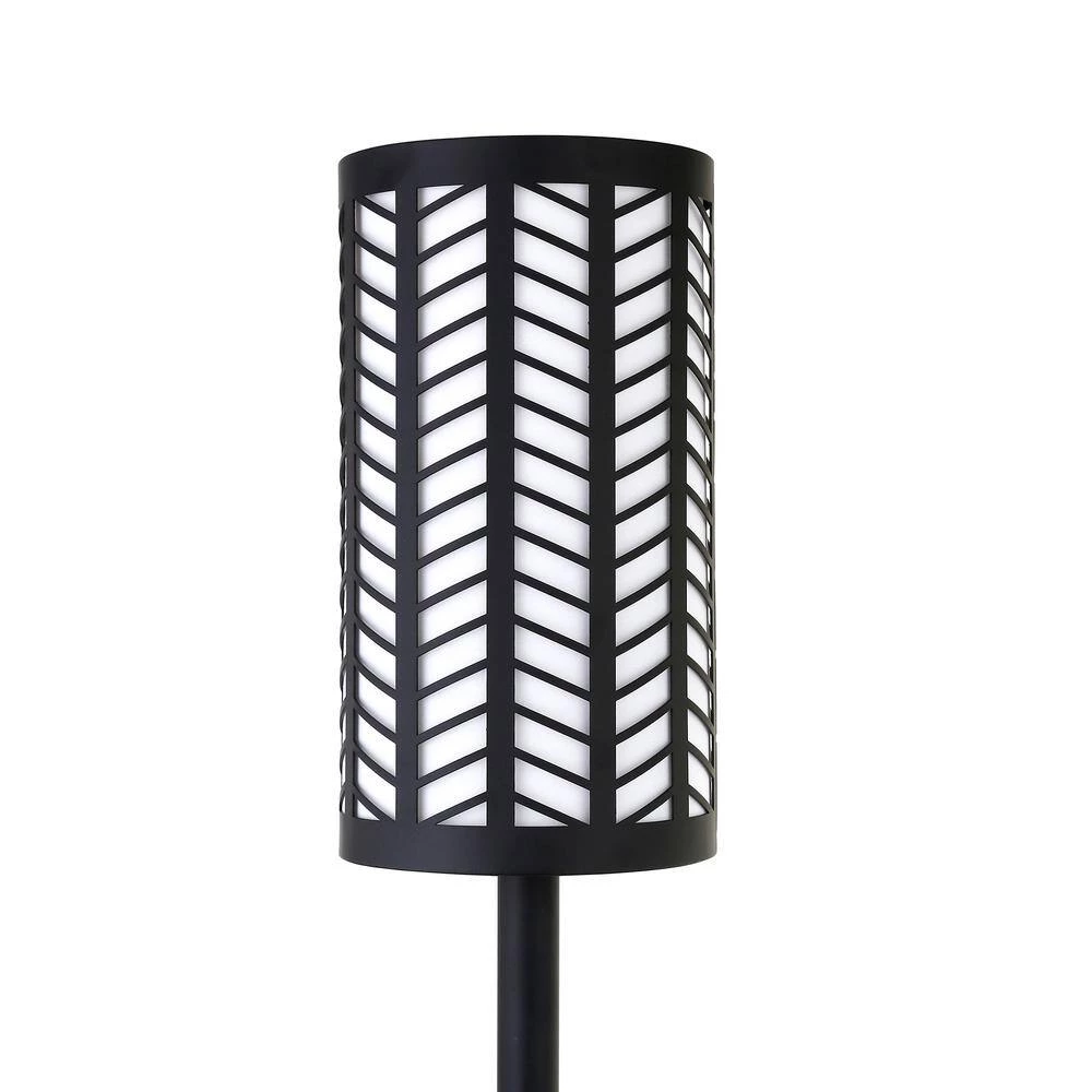 - Paired with a double-layered shade, perforated in a chevron metal design over a heat-resistant white plastic diffuser