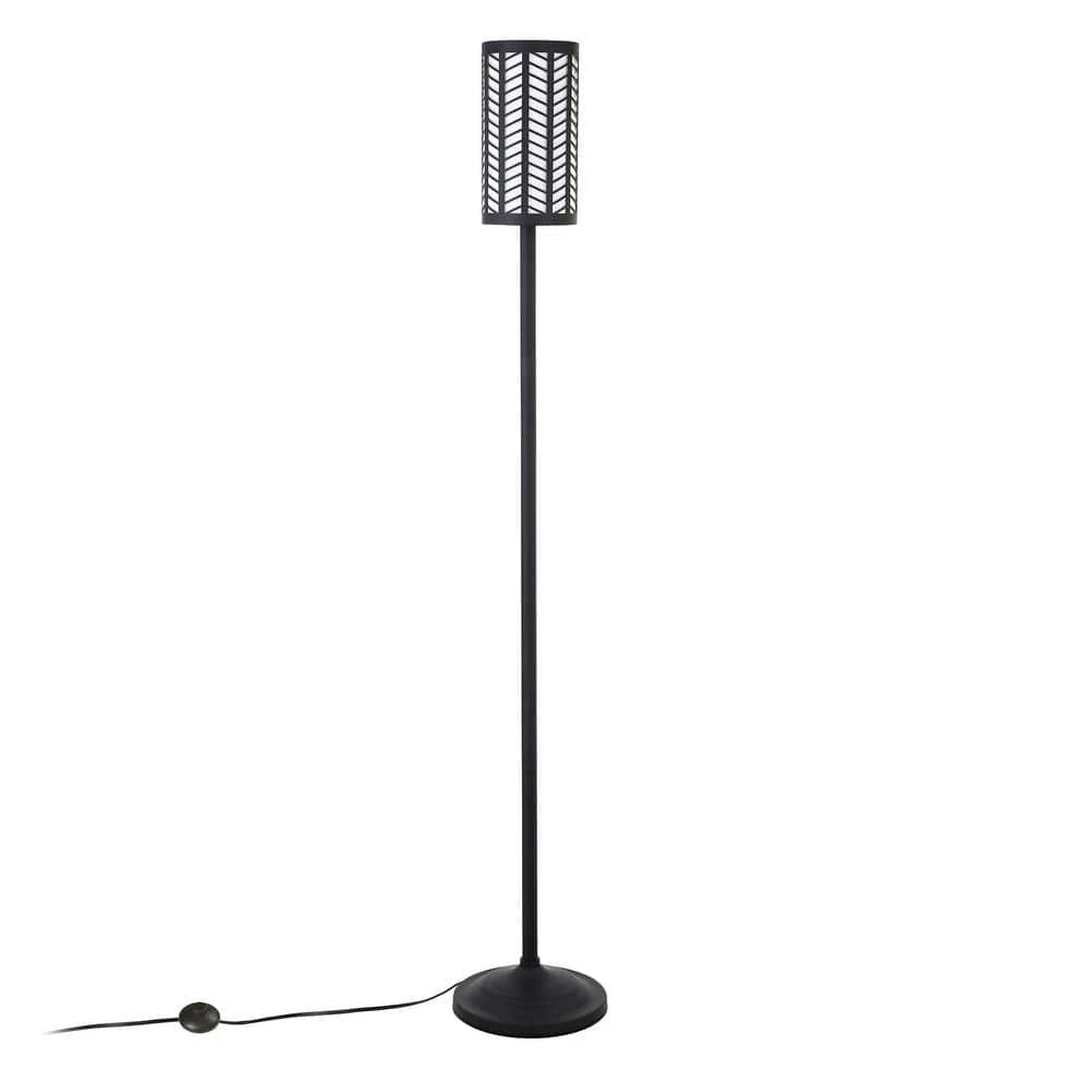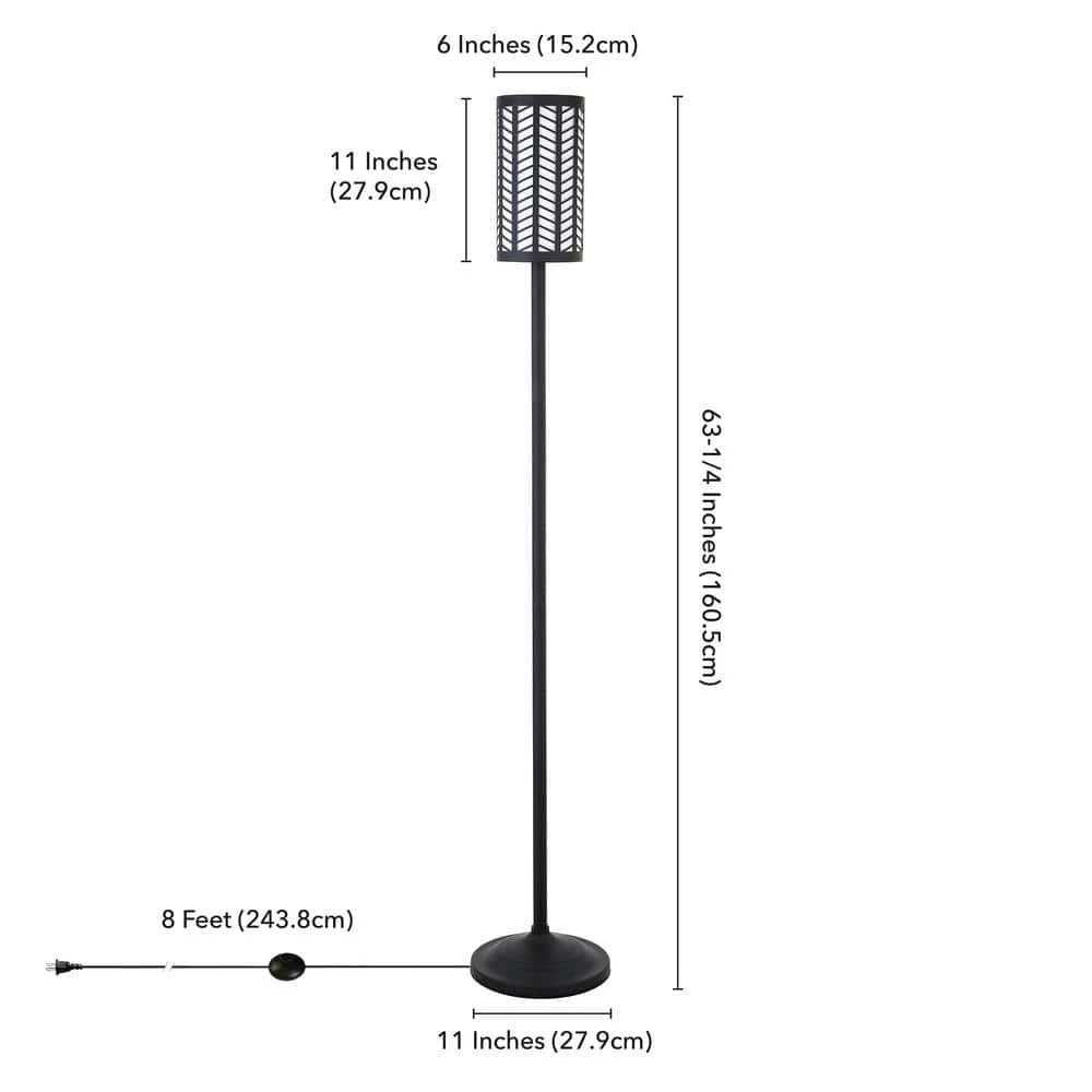 Add a touch of whimsy to your lighting design with this playfully detailed floor lamp. The simple candlestick design is punctuated by a double-layered cylindrical shade, featuring a perforated chevron design in blackened bronze that creates a cozy contrast against the inner white diffuser. Allow this lamp to be the perfect complement to your eclectic style.