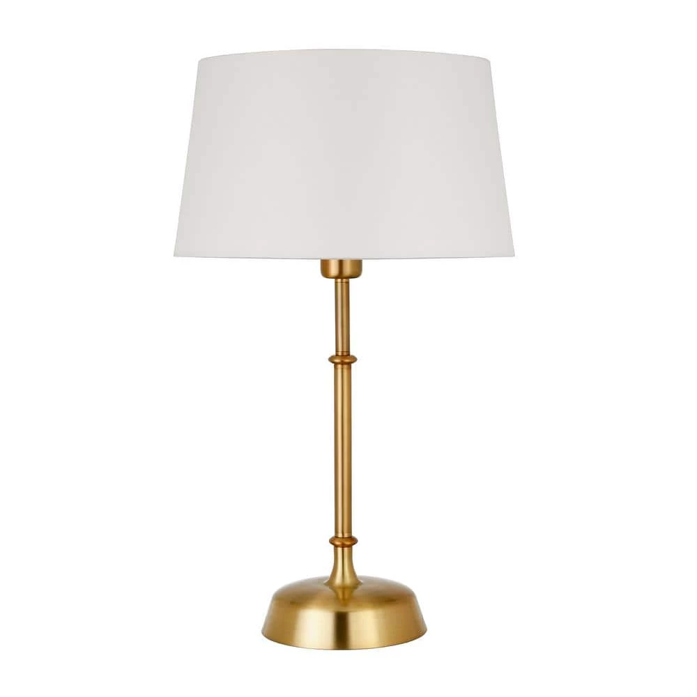 A modern update to a classic, this table lamp combines minimalist design with a touch flair. A sleek metal body ends at round base while the fabric drum shade brings a touch of coziness to the industrial-styled lamp. This lamp will blend seamlessly with your contemporary or transitional decor.