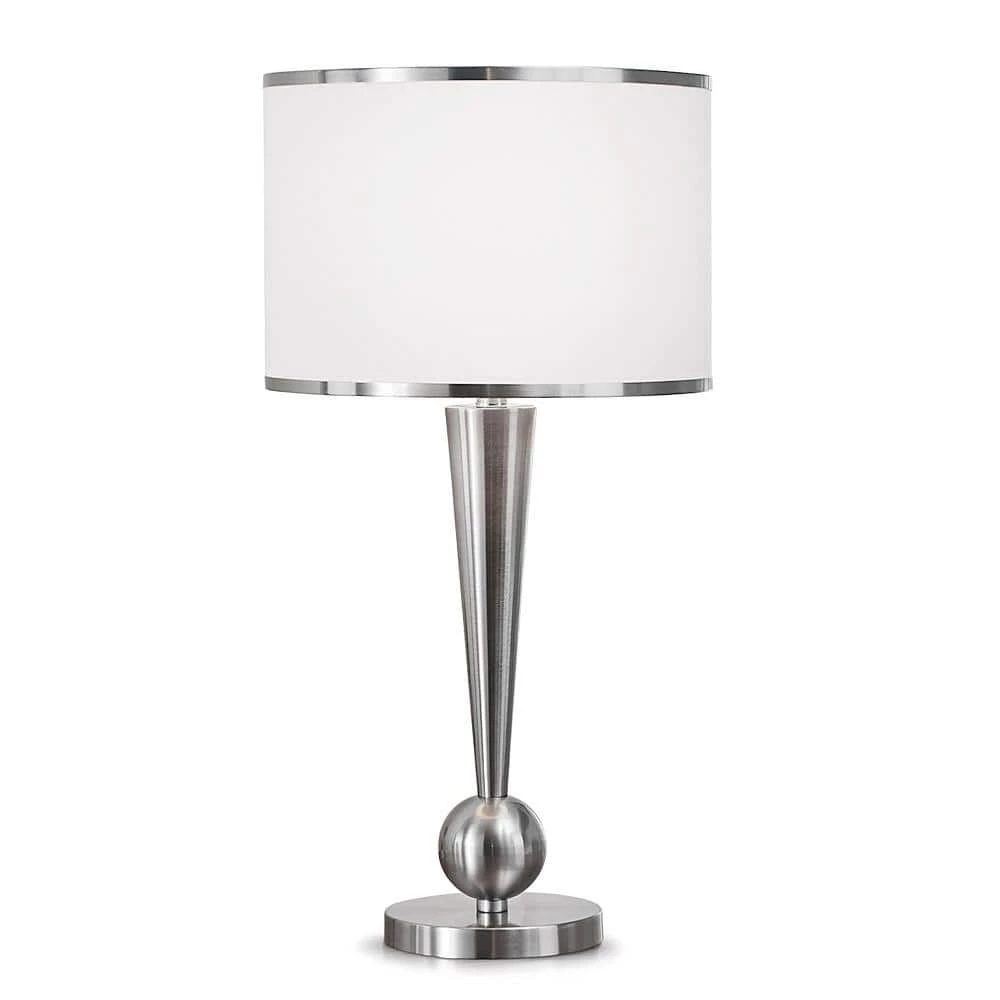 HOMEGLAM design, the Dione lamp collection features simple elegant design with focus point metal ball and cone shaped metal work. The large 14.5 in. drum white linen lamp shade design enhanced with top and bottom metal trims. The lamp is strong metal constructed with a steady weighted lamp base. The light is controlled by a 3-Way socket rotary switch. The Dione lamp collection from HOMEGLAM brings plenty imagination in your perfect place, It is a perfect additions to decorate your space with simplicity and style.