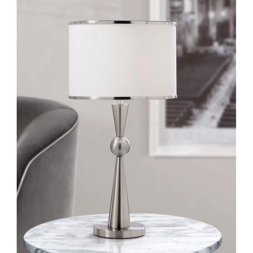 HOMEGLAM design, the Dione lamp collection features simple elegant design with focus point metal ball and cone shaped metal work. The large 14.5 in. drum white linen lamp shade design enhanced with top and bottom metal trims. The lamp is strong metal constructed with a steady weighted lamp base. The light is controlled by a 3-Way socket rotary switch. The Dione lamp collection from HOMEGLAM brings plenty imagination in your perfect place, It is a perfect additions to decorate your space with simplicity and style.