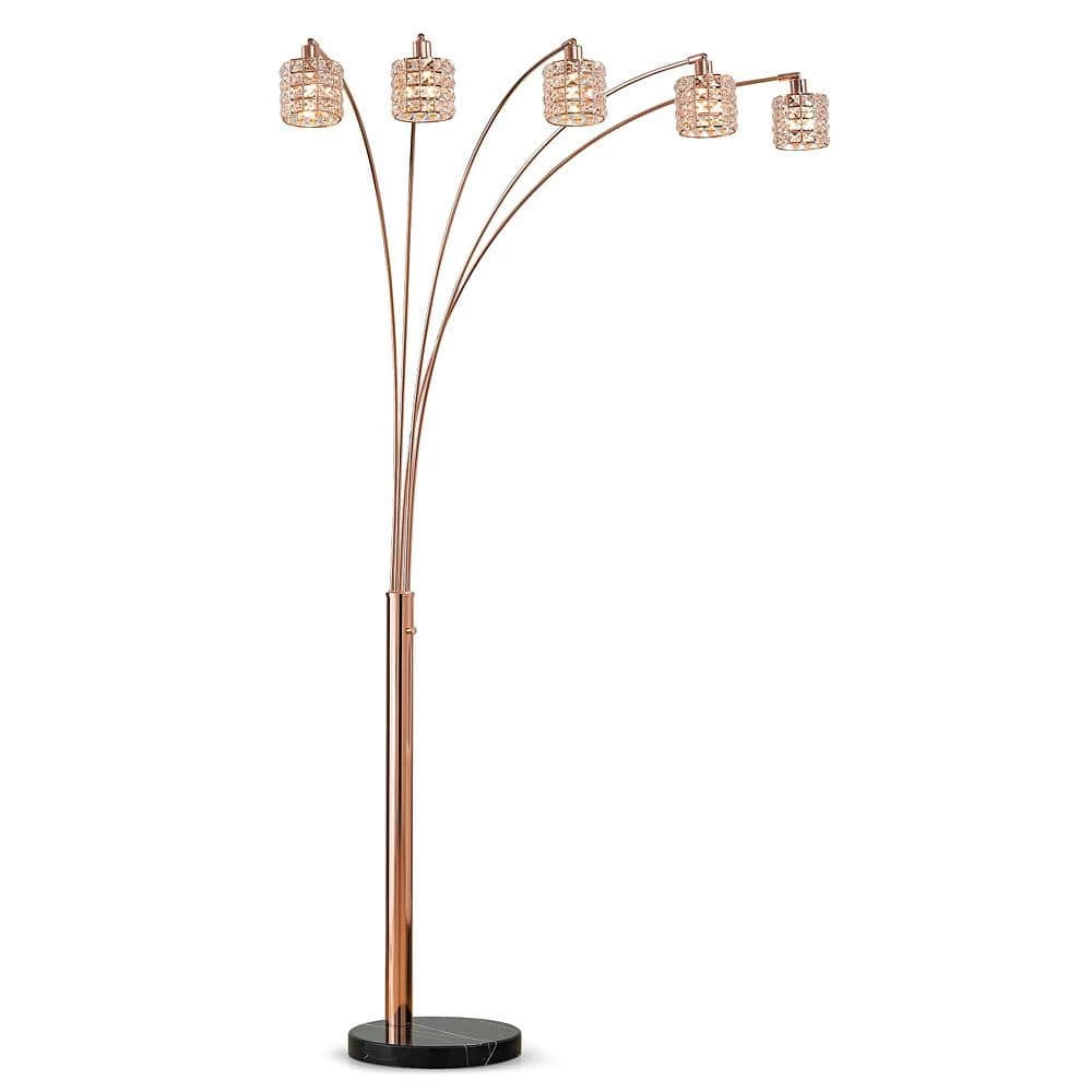 - 85 in. overall height, 40 in. reach 5-light LED arch floor lamp