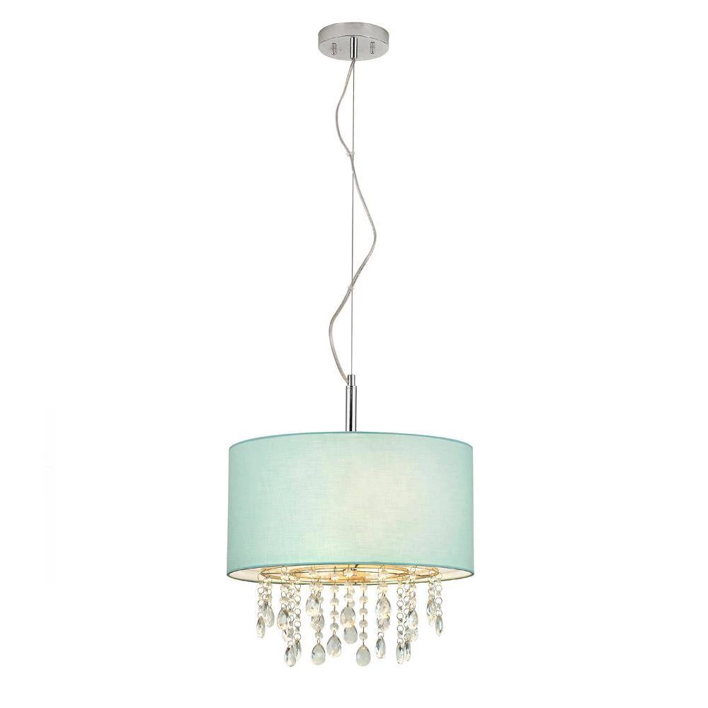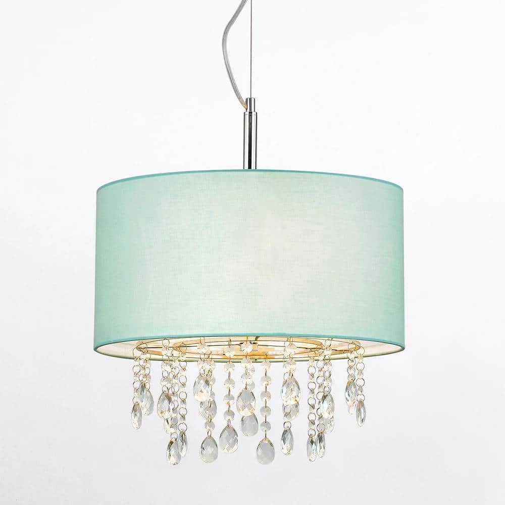 - Light turquoise blue 16.5 in. drum linen drum lamp shade, detachable bracket with clear crystal glass pendants