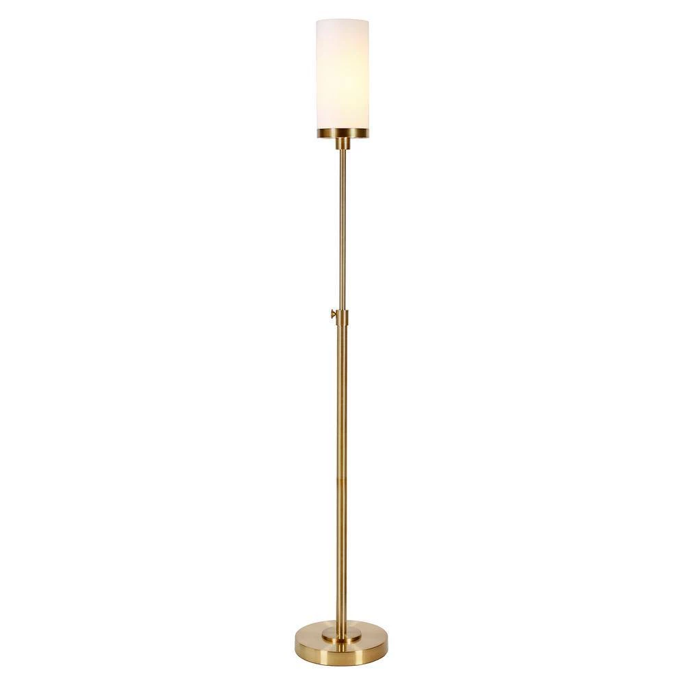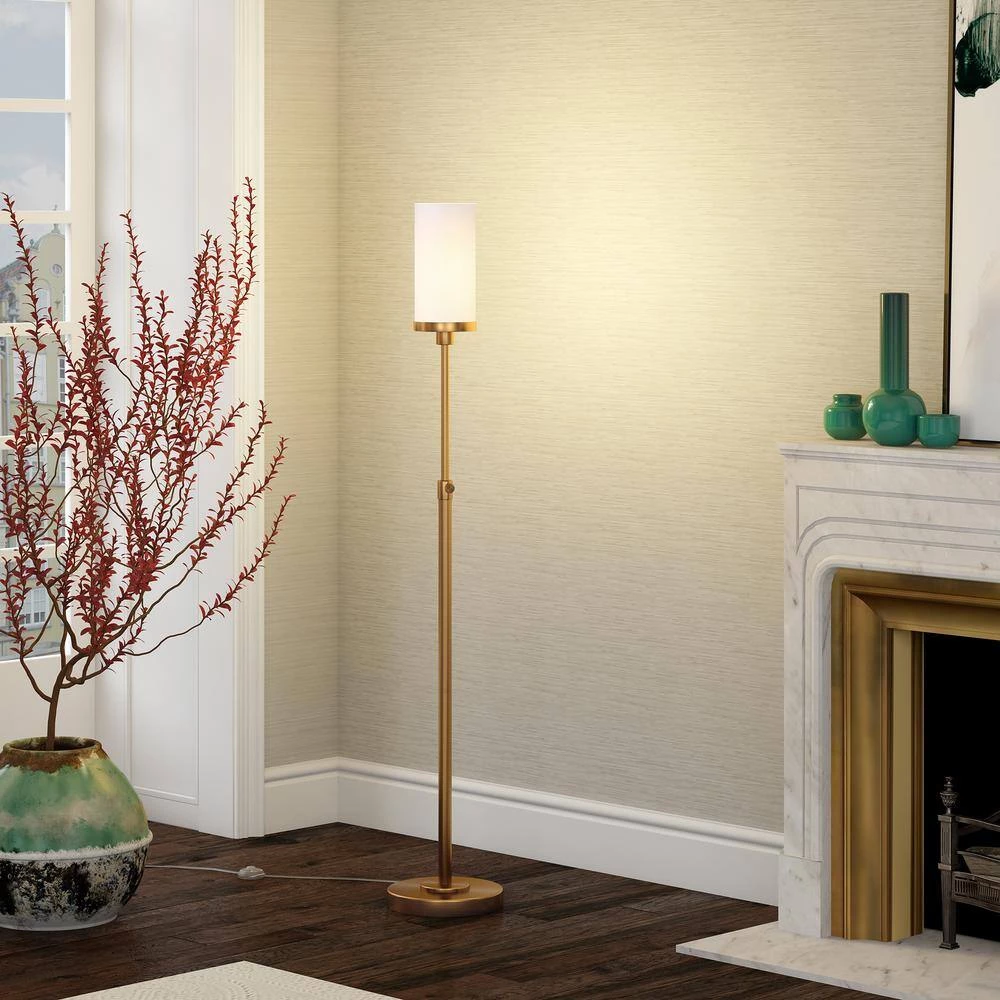 Illuminate your living room or add a touch of cozy ambiance to your bedside, this vintage-inspired floor lamp combines industrial style and function in your space. Featuring a pipe-inspired metal design with a neutral metallic finish and white milk glass shade, this piece brings a touch of industrial design to your living space. The clean lines make it compliment many design styles.