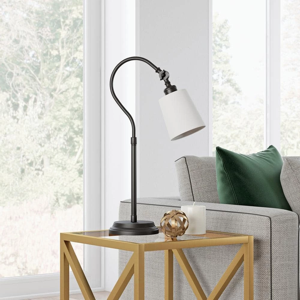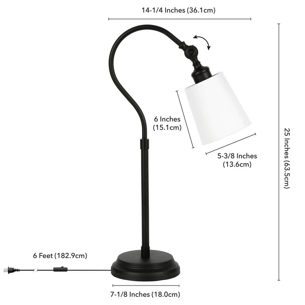 The perfect task light, this 25 in. table lamp counterbalances function and design. Made from metal in a blackened bronze finish, the fabric shade provides a cozy glow to your bedside or office desk. It features an arced design which allows for perfect targeted lighting. Inspired by industrial and farmhouse design, it features metal construction and a linen shade.