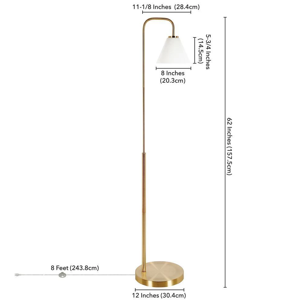 Bring a touch of modern elegance to your living room or bedroom with this eye-catching minimalist floor lamp. The arc of the lamp leads to a cone-shaped glass shade that adds sophistication and warm lines to the design of your home. Let this lamp’s appealing blend of curves and angles illuminate your space in style.