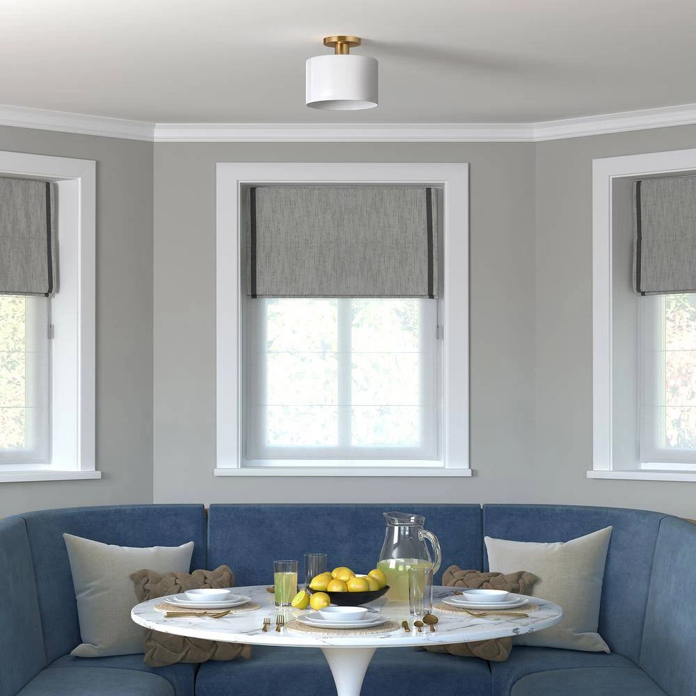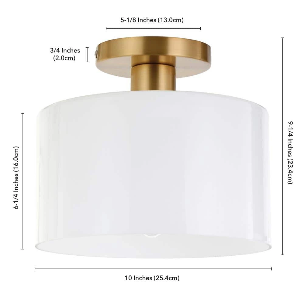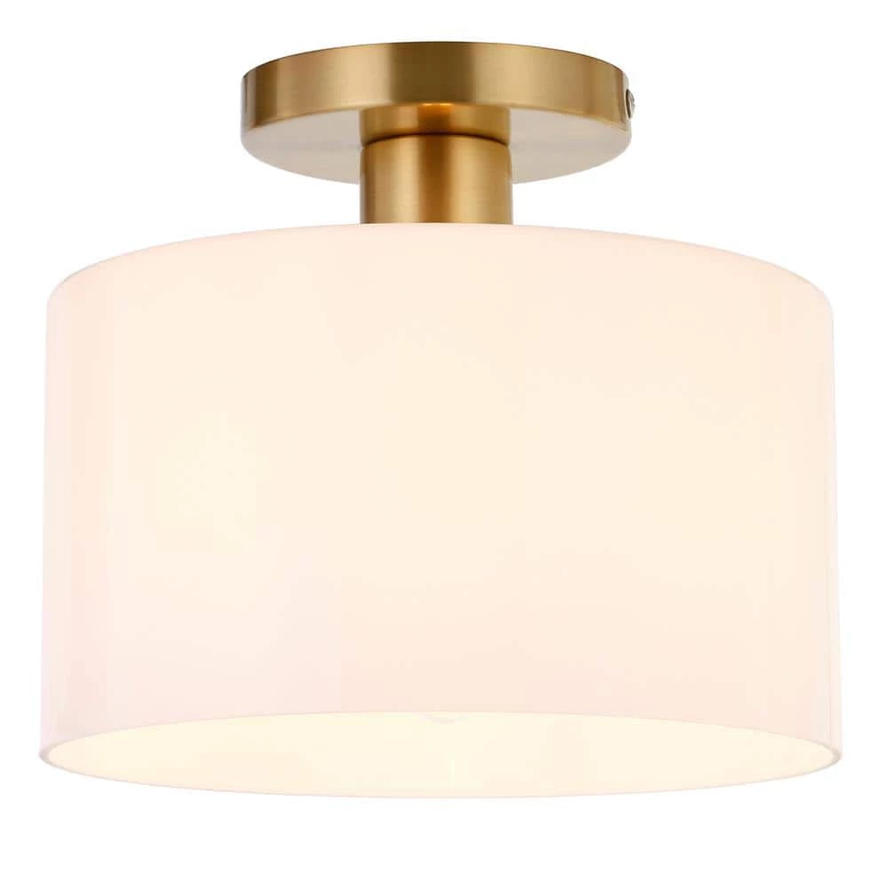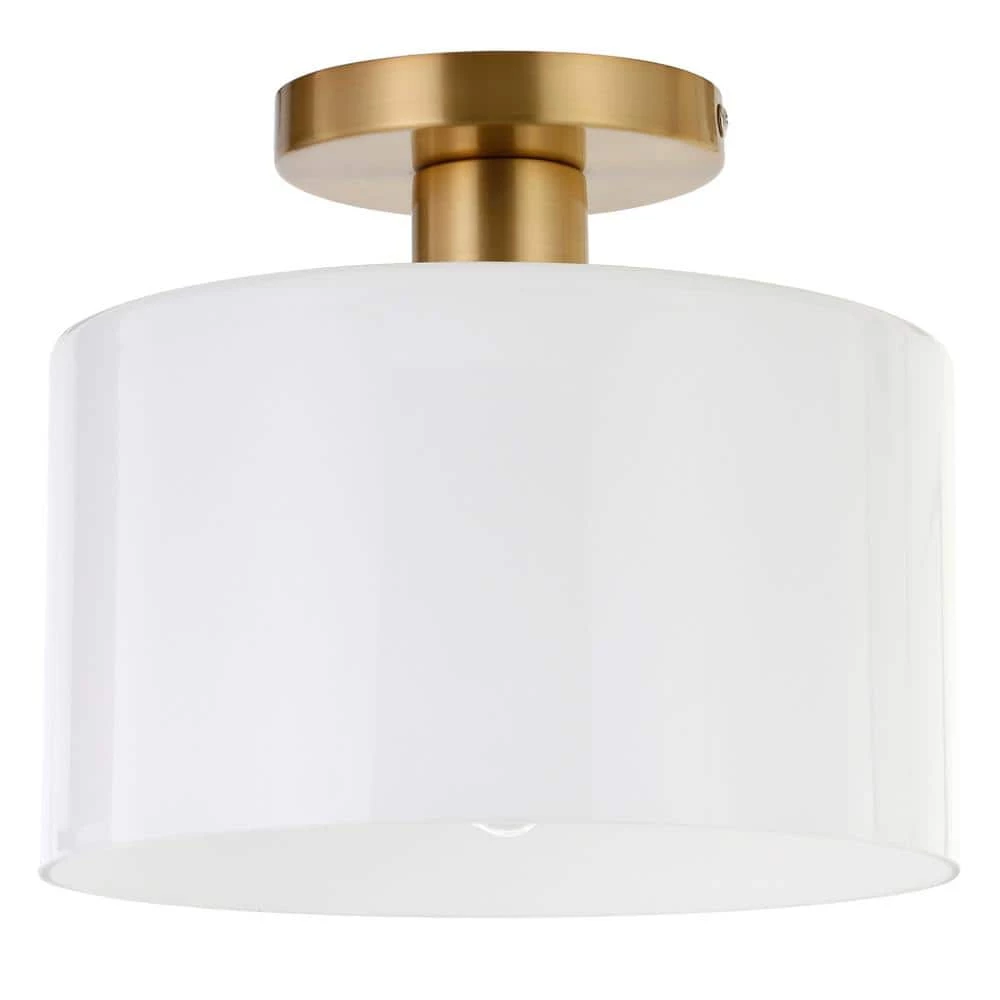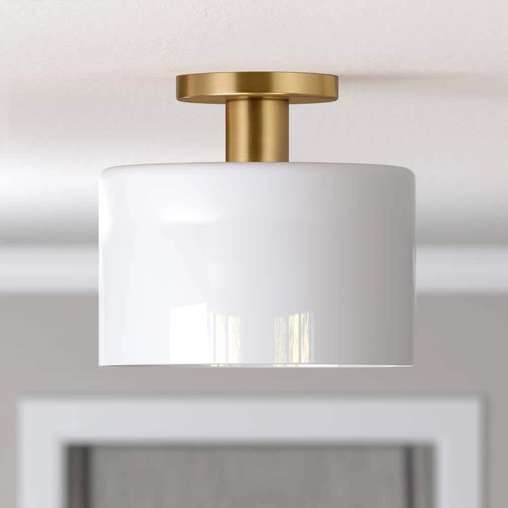 With a style inspired by the industrial revolution but appropriate for a coastal beach house, this semi flush mount ceiling light brings true mood lighting to your space. The classic glass drum shade and streamlined hardware gives this fixture a retro feel that complements many decor styles. The on-trend metallic finish provides a perfect complement to nearly any color scheme.