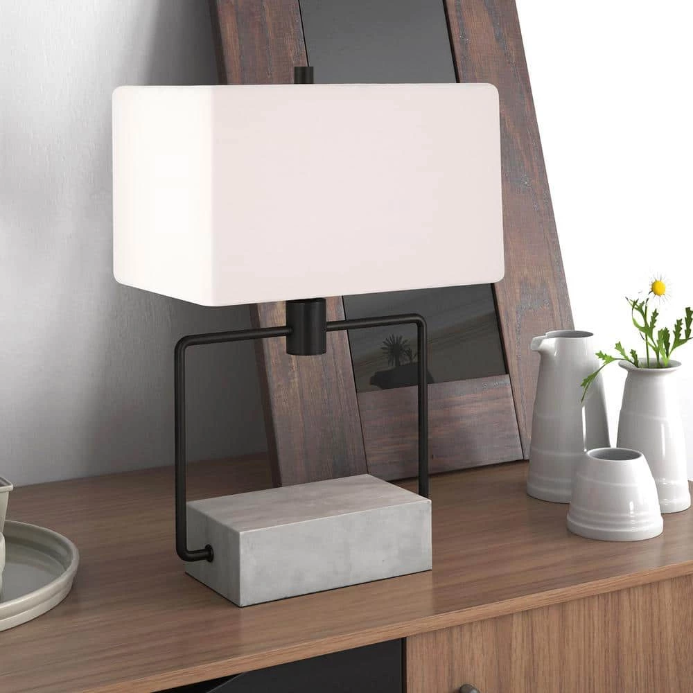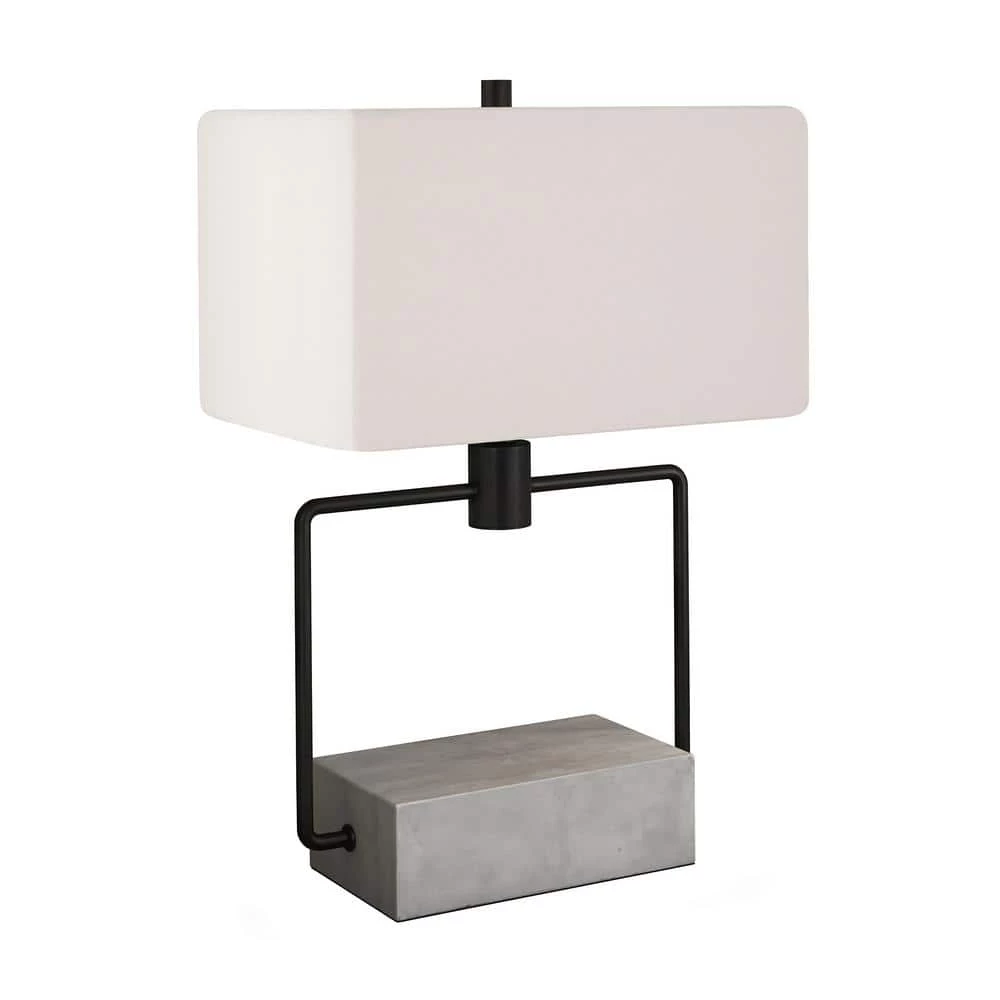 Grounded in concrete, this clean, contemporary design is both light and linear while remaining architecturally interesting enough for any space. The metal frame is integrated into the concrete base making it a visually interesting but sturdy lamp. It is paired with a rectangular shade.