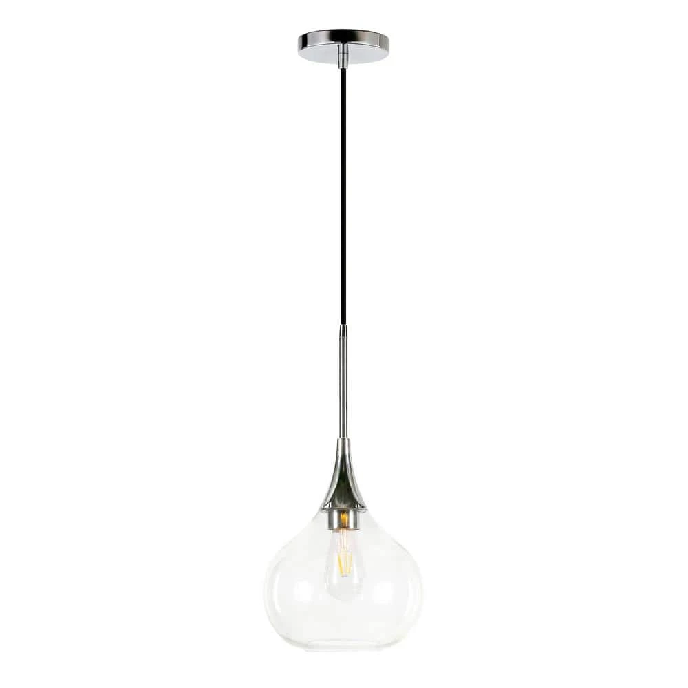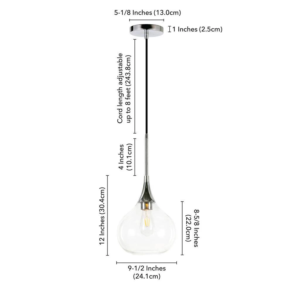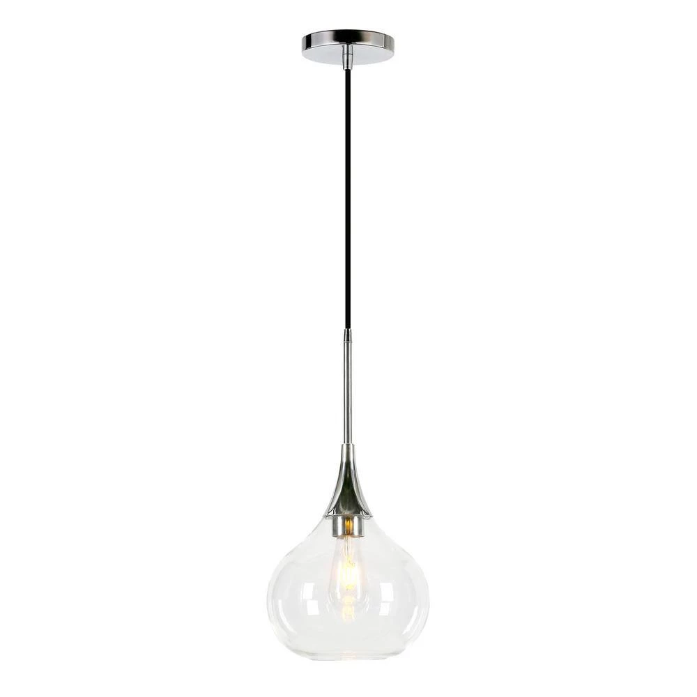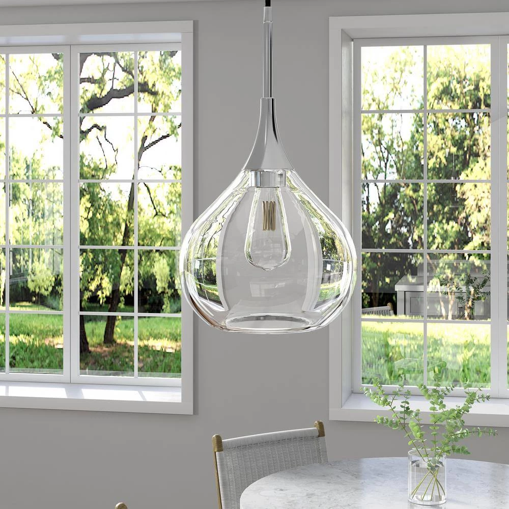 Illuminate your kitchen, entryway or dining room table with this mid-century-inspired pendant light. Featured in a variety of neutral metallic finishes, this hanging light’s wide teardrop glass shade is the perfect backdrop for a statement light bulb of your choice. The 8 ft. adjustable cord lets you customize this fixture to fit your space perfectly.