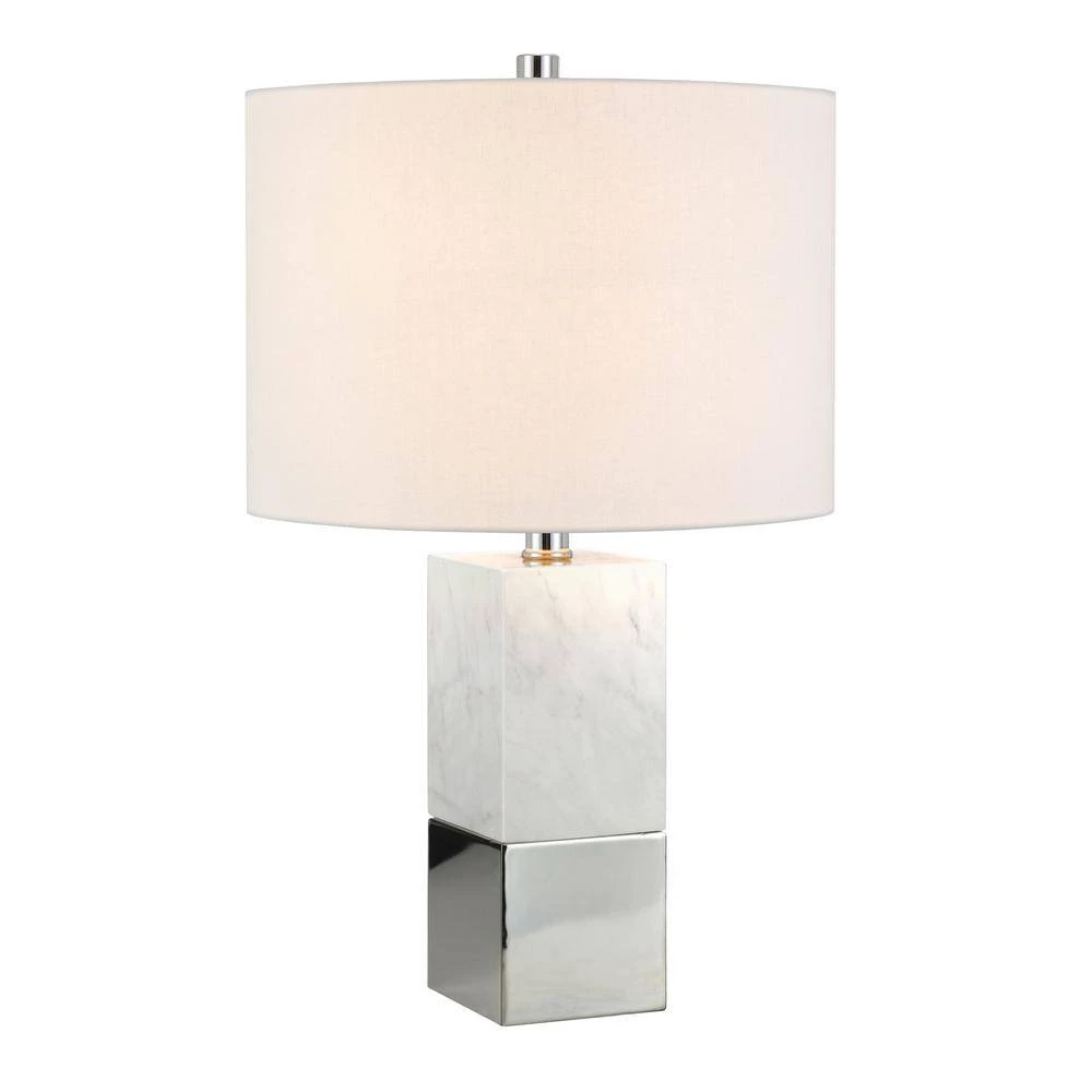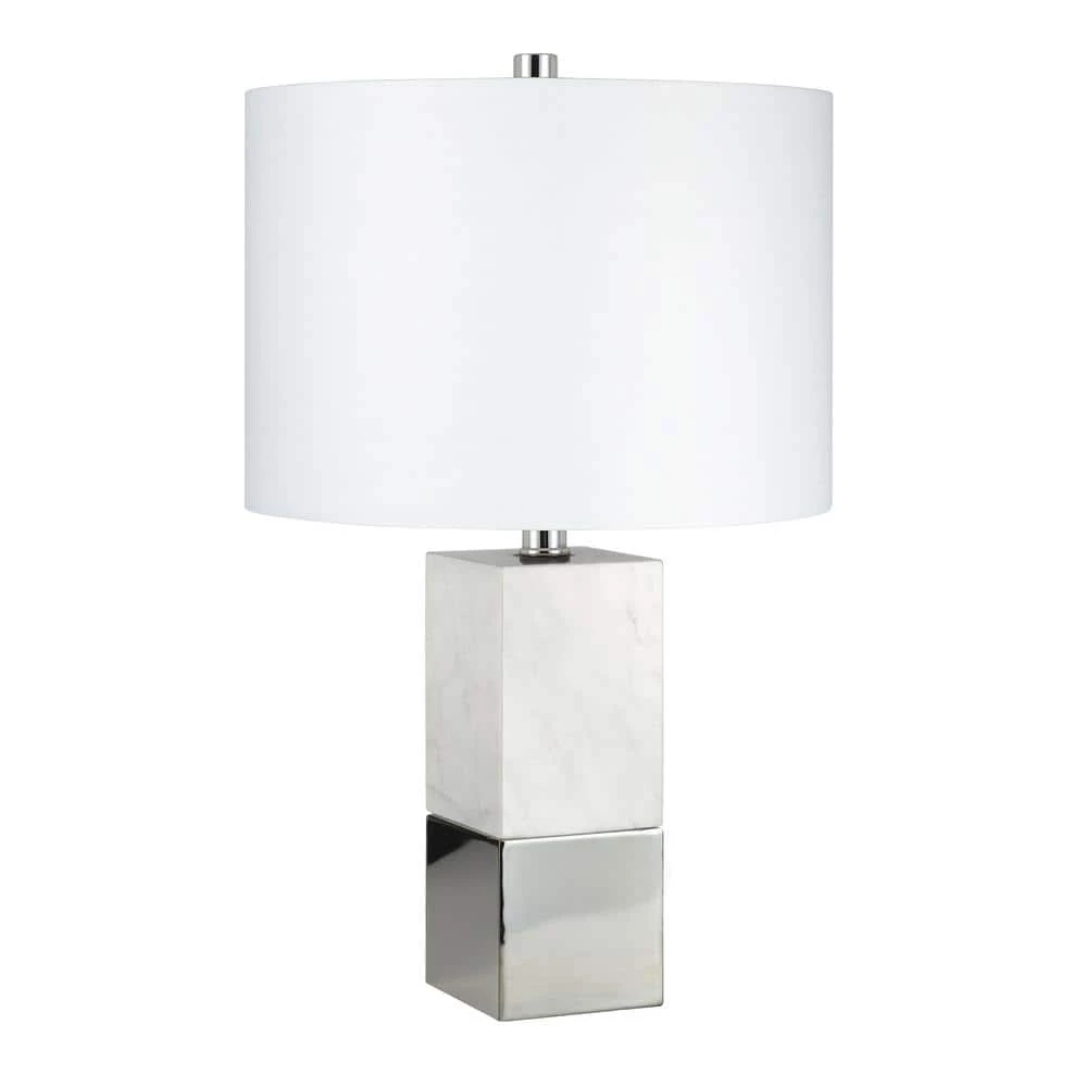 Evoke classical Italian decor with this Carrara style marble lamp. The weighty solid marble base is nestled into a substantial nickel pedestal. Natural and man-made materials combine to create a sophisticated statement piece.