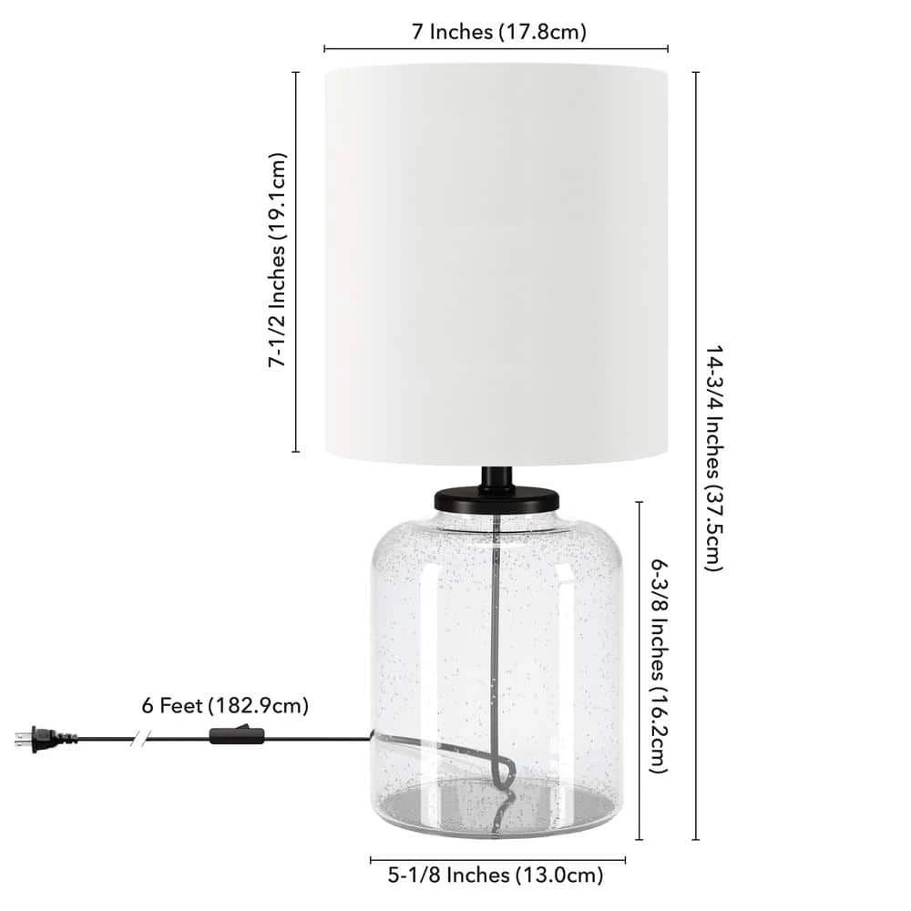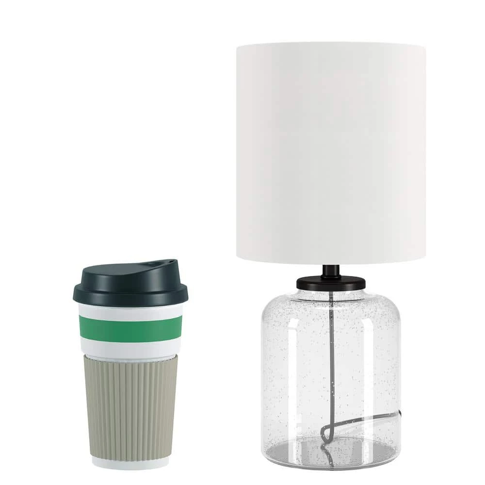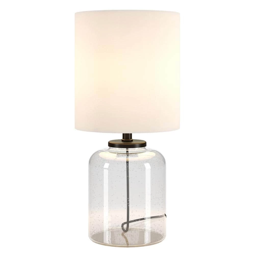 Bring a touch of retro styling to your bedside, mantle, or hall table with this coastal-inspired mini accent lamp. The jar-shaped base is made of seeded glass, creating an organic feel to the fixture. Accented with blackened bronze metal and a crisp linen shade, this lamp is the perfect piece anywhere you need to shed a little extra light.