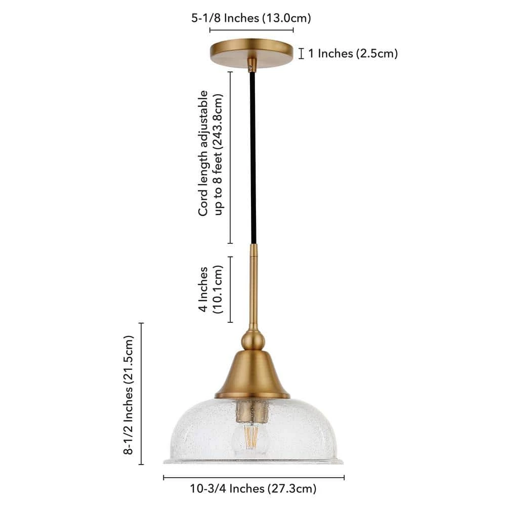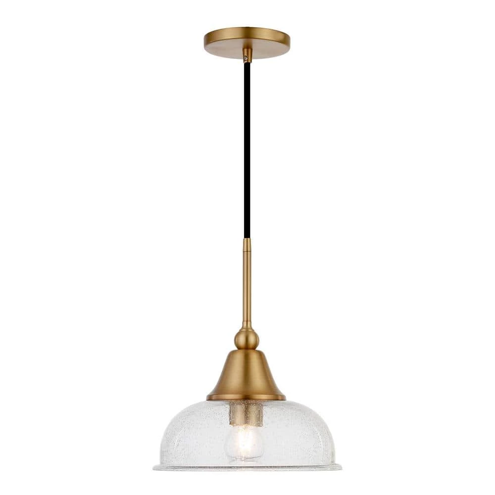A seeded glass shade brings organic interest to this traditional pendant light. The natural variation offsets the neutral metallic finish, creating an eye-catching fixture perfect for your modern farmhouse kitchen, traditional dining room or foyer. Its height-adjustable cord allow it to fit seamlessly in any space and your choice of bulb will let your style shine through.
