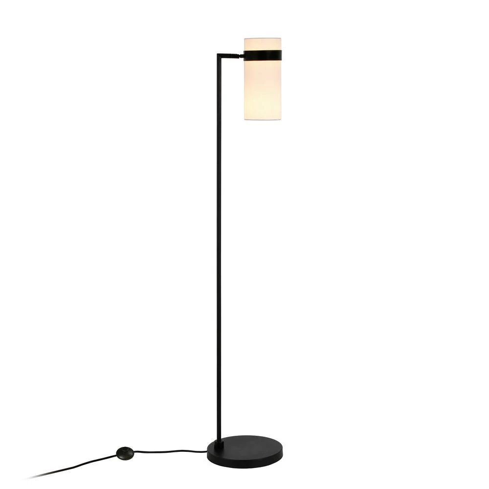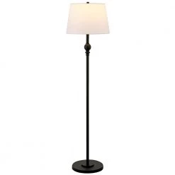 This bronze floor lamp is an update on mid-century modern design, with an clean take on design. The golden brass finish brightens up any room. Its cylindrical shade casts light across any space.