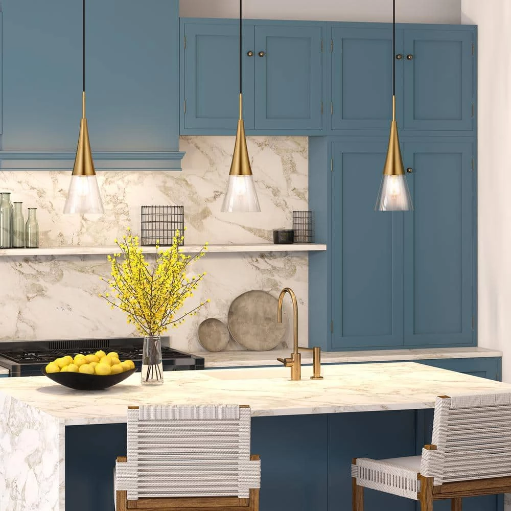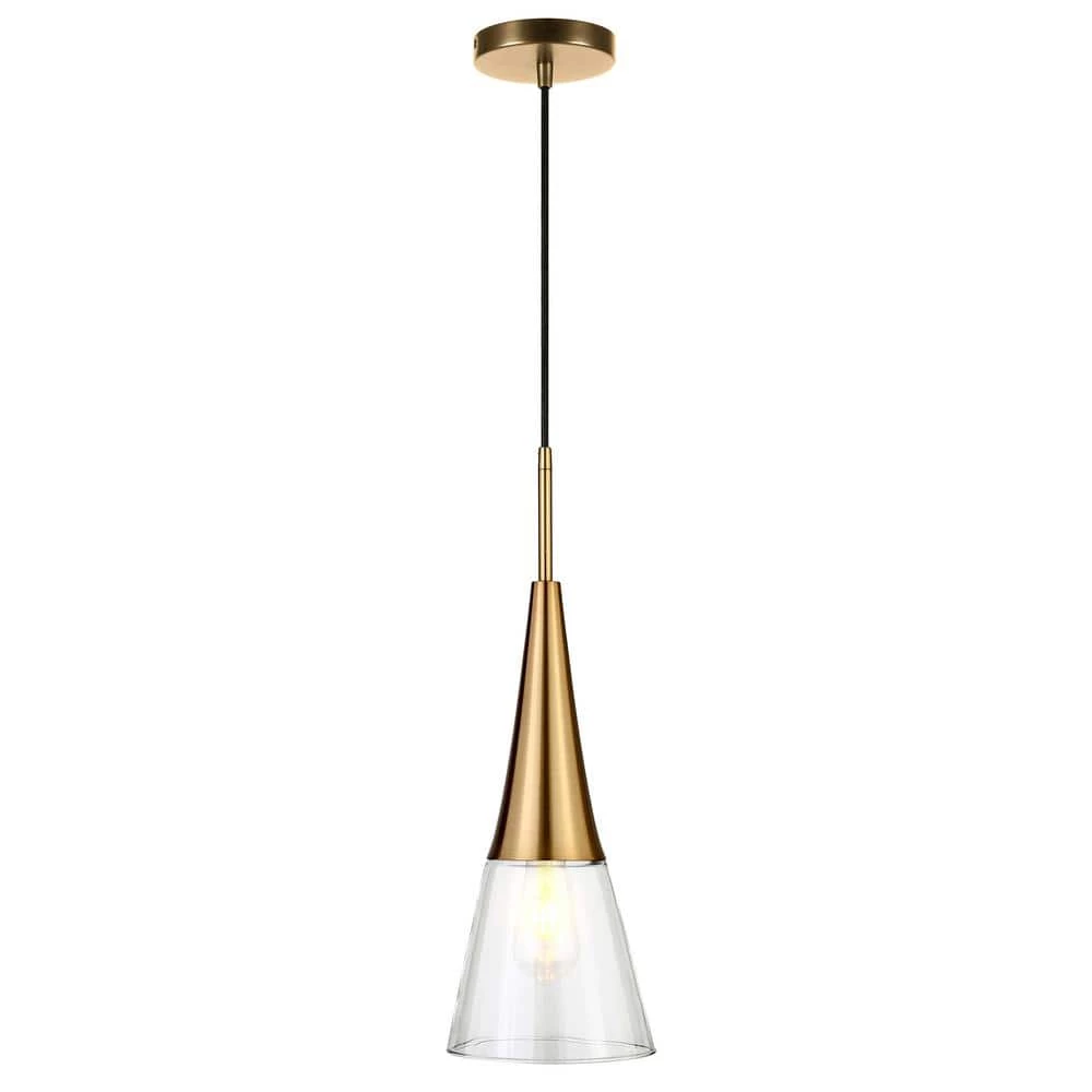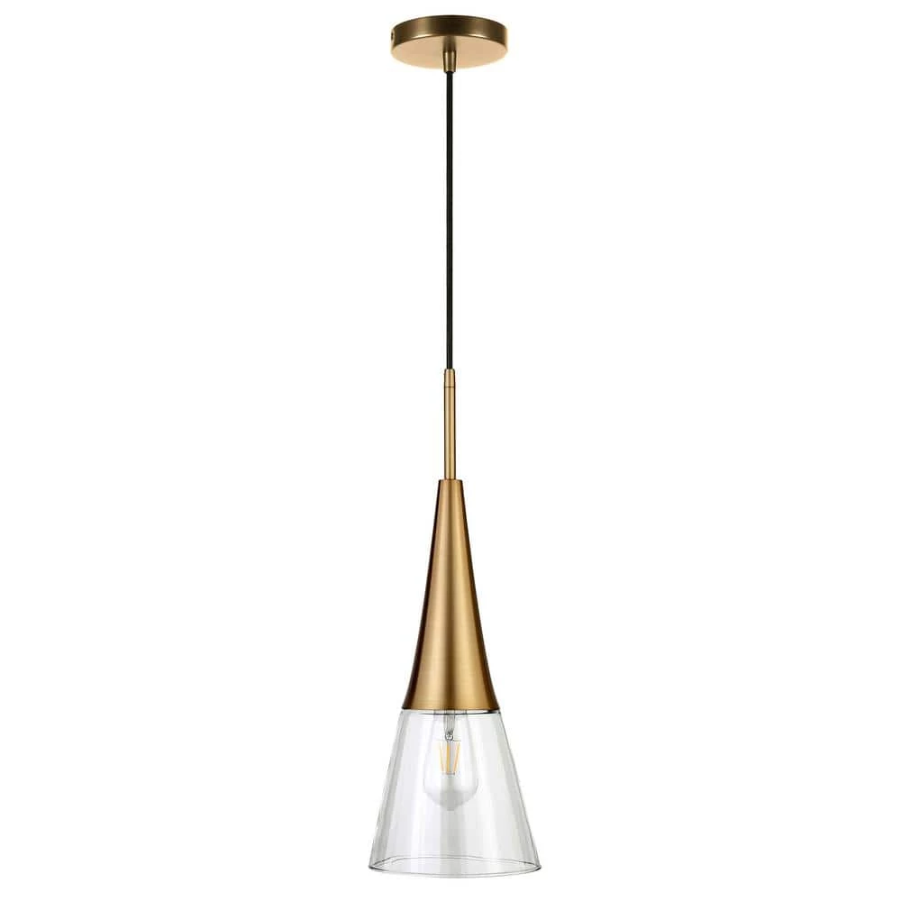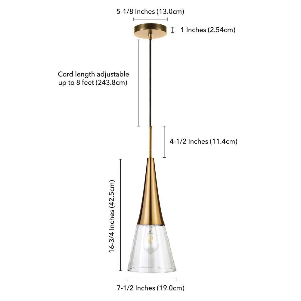 Brighten your kitchen, dining room or foyer with this timeless pendant light that never goes out of style. The conical glass shade is topped with lustrous metal accents, providing both direct and diffused light while allowing the statement light bulb of your choice to shine through. The 8 ft. adjustable cord lets you customize this fixture to fit your space perfectly.
