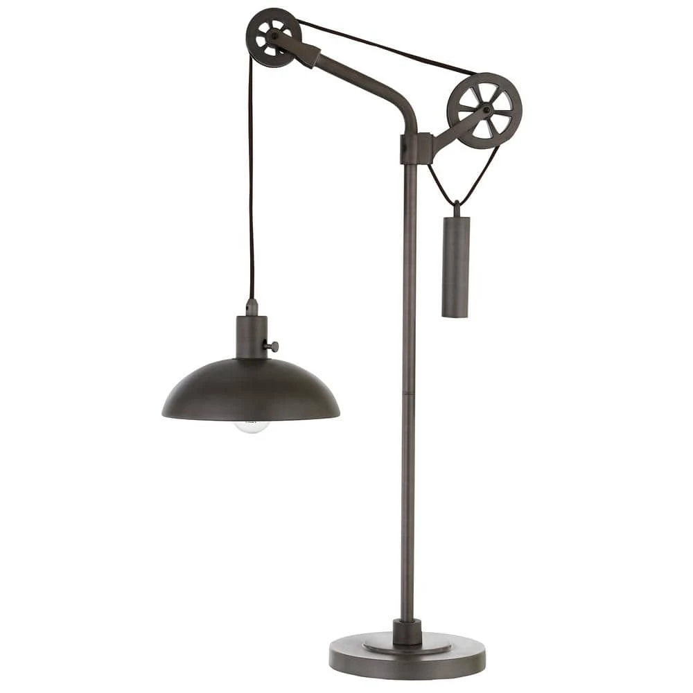 Fusing function and industrial style, this desk lamp is the statement-piece you need on your table top. It features a streamlined pulley system so you can adjust its height to suit your task. Crafted from metal in your choice of neutral metallic finishes, this table lamp is perfect for a vintage-inspired look on your desk. A dome-shaped shade completes the look for your office or bedroom ensemble.