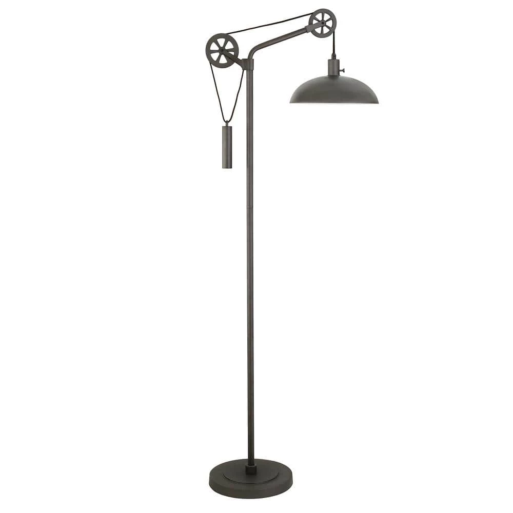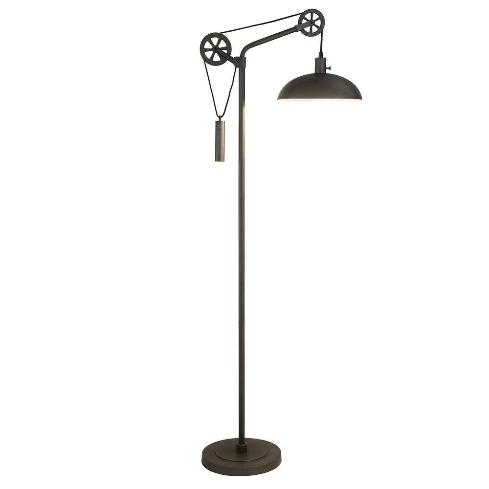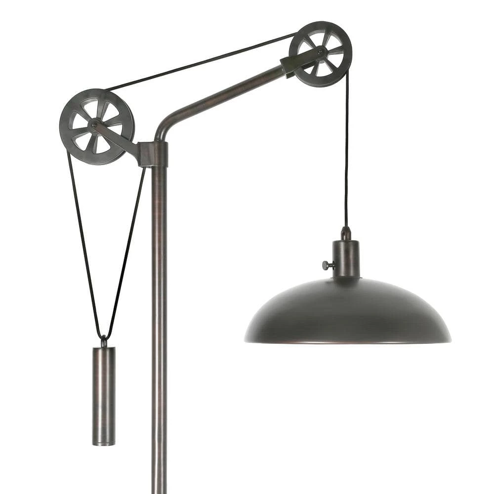 Fusing function and industrial style, this standing lamp is the statement piece you need in your living room or bedroom. It features an industrial-inspired pulley system so you can adjust its height to suit your task. Crafted from metal in your choice of neutral metallic finishes, this floor lamp is perfect for a modern-inspired space. A dome-shaped shade completes the look for your office or bedroom ensemble.