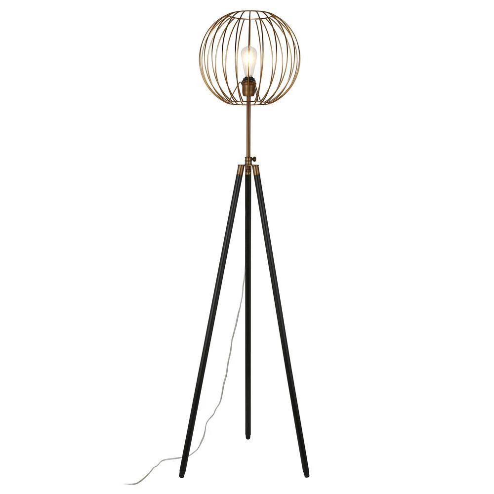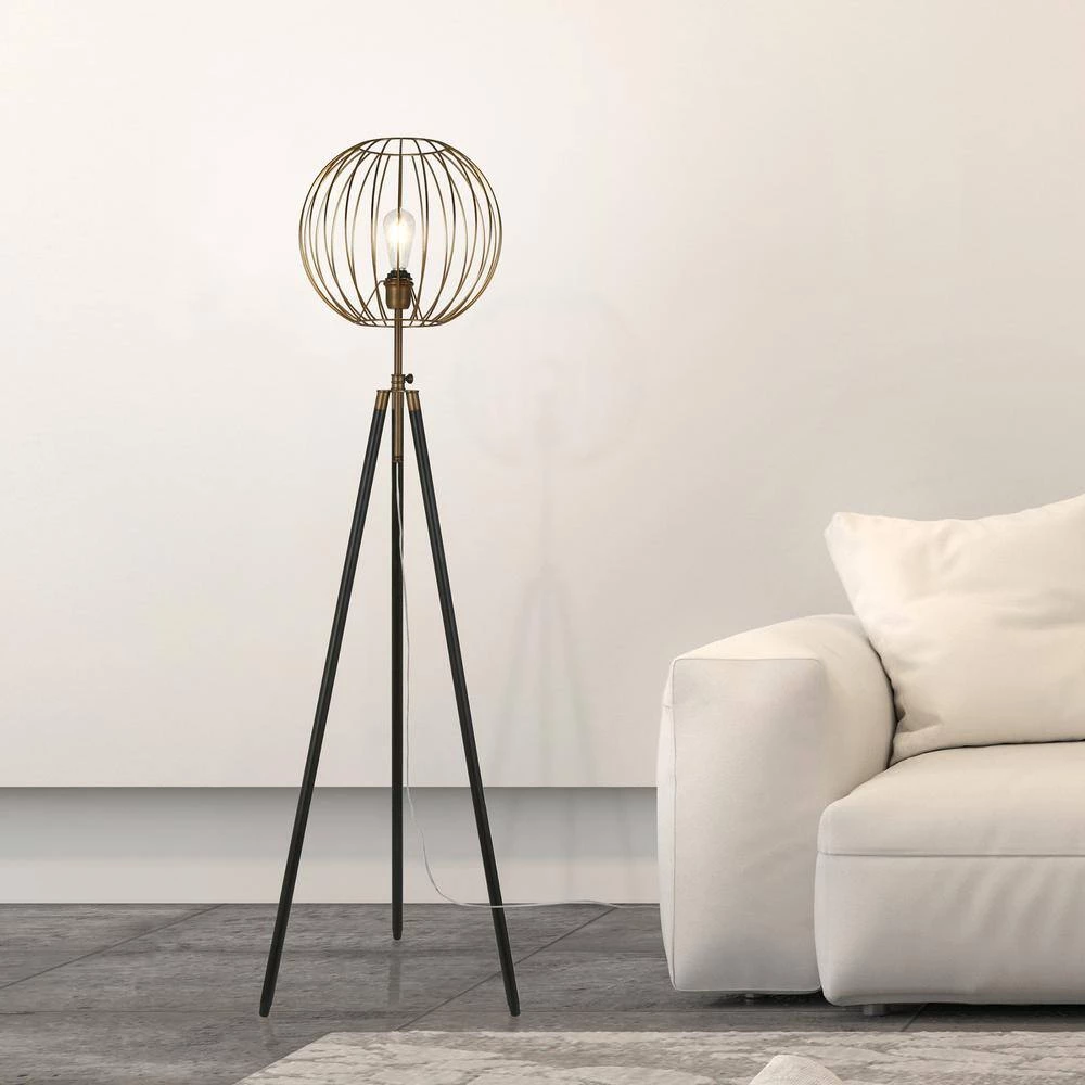 This wire globe shaped floor lamp adds architectural interest to any room. The globe shape allows this to fit seamlessly into any room. With a blackened bronze finish it will match with any style decor.