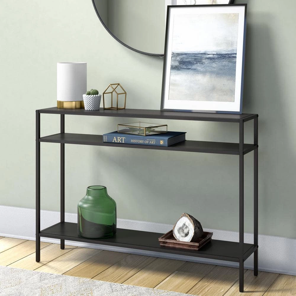- Handcrafted finish is applied to the steel base
