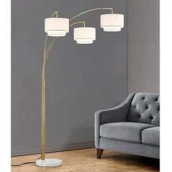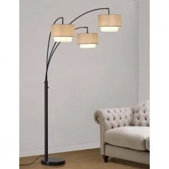Broadway 83 in. Dark Bronze Finish 3-Light Arch Floor Lamp with Brown/White Shades by HomeGlam