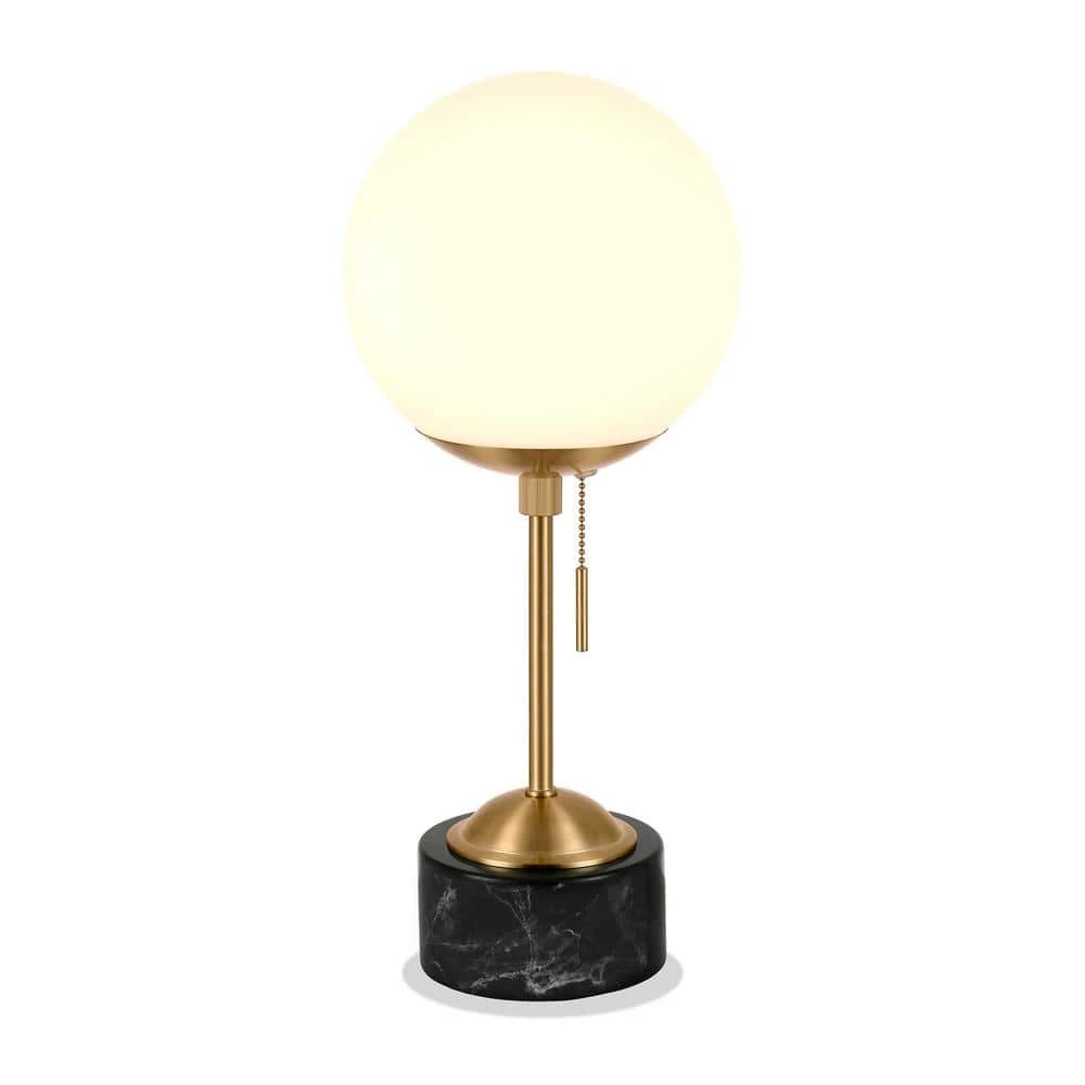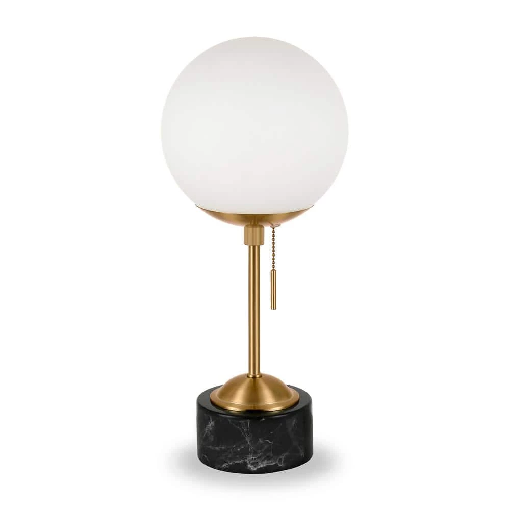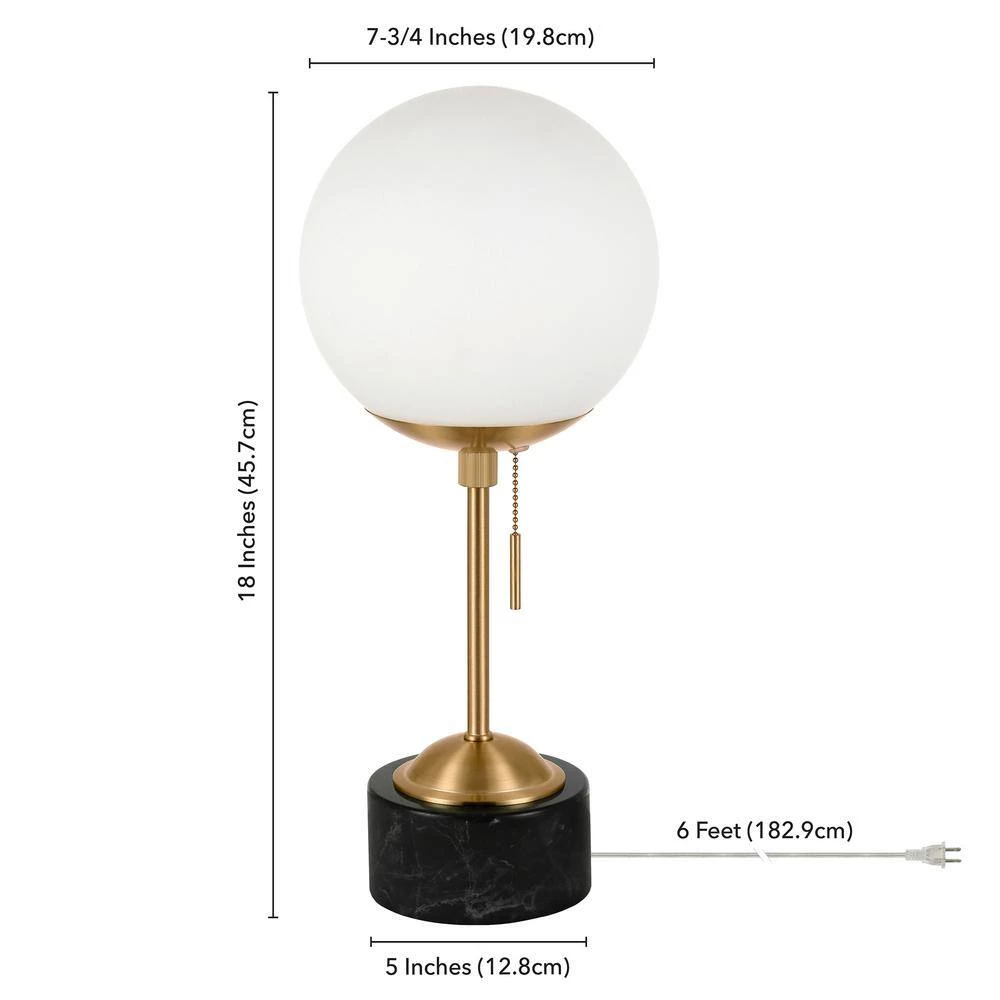 This marble-based sphere and stem style lamp creates a fresh, modern take on Art Deco. The black marble base creates a weightiness to the white globe shade and brass hardware. The globe-shaped shade makes this an eye catching piece in any room.
