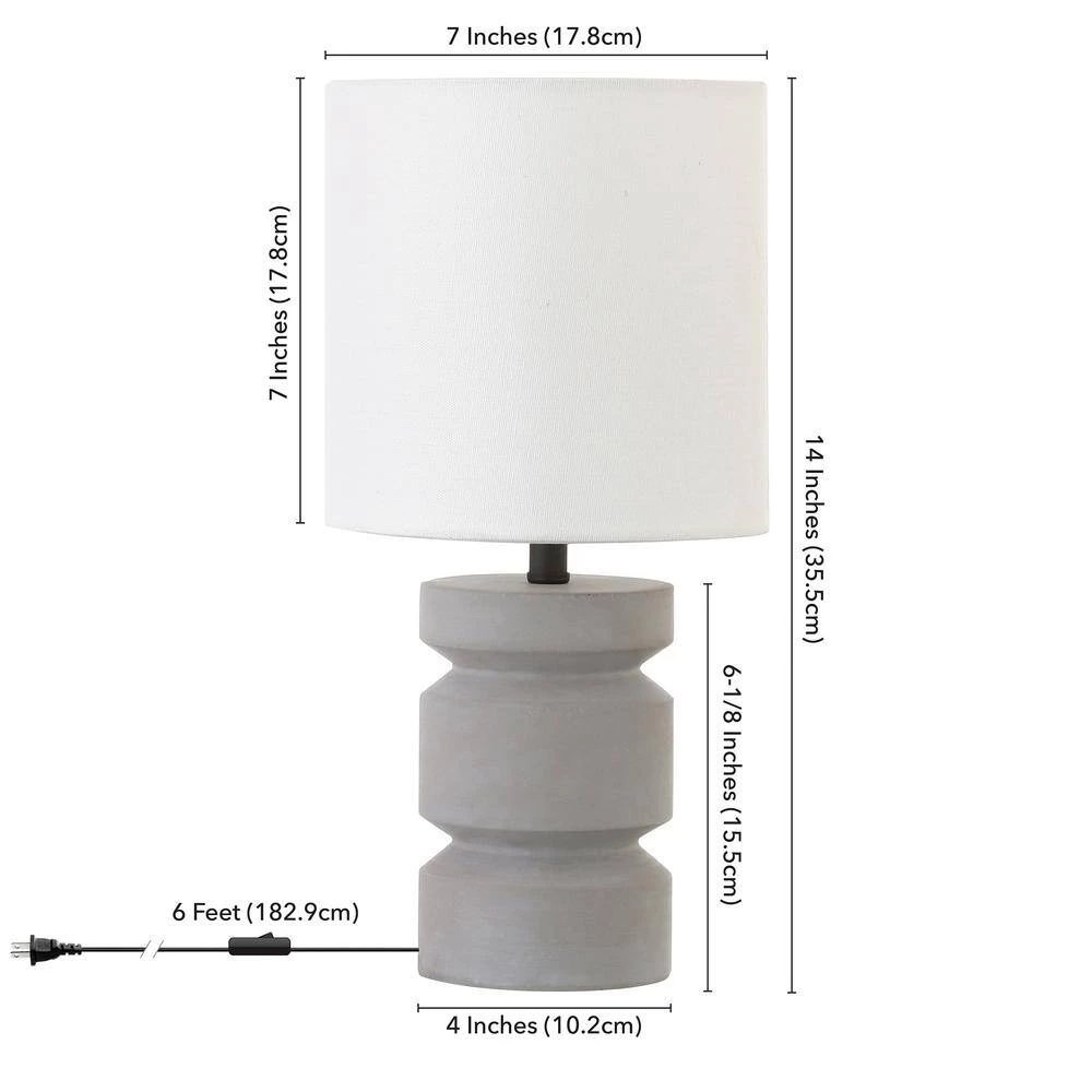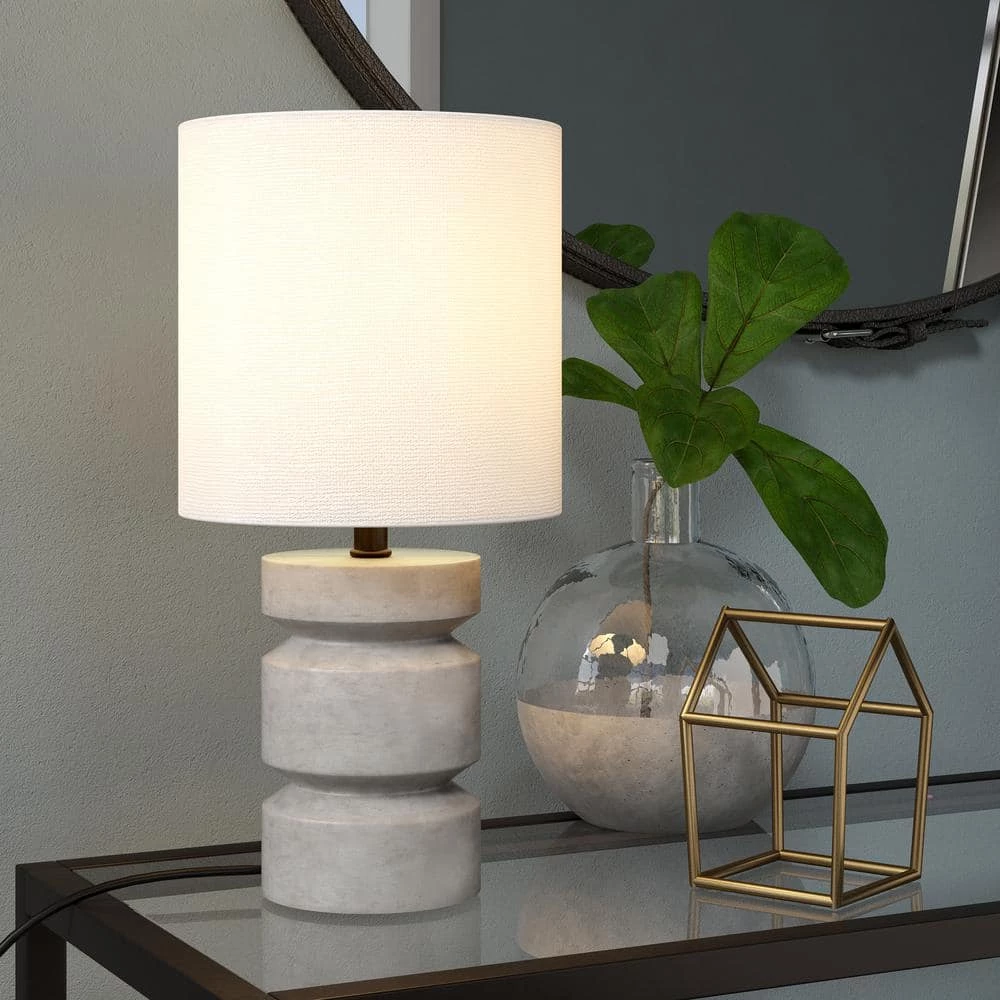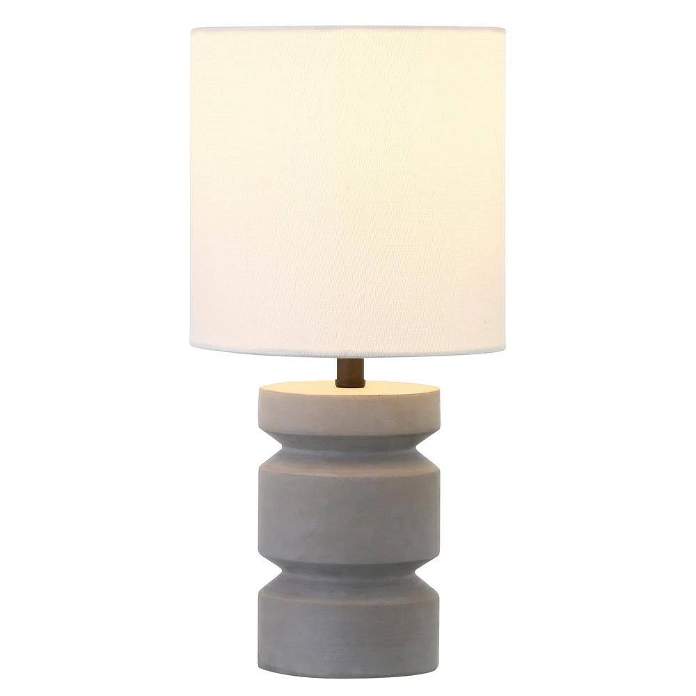 Forged from concrete, this sculpturally stunning mini accent lamp adds architectural interest to your bedside, mantle or hall table. The 3-tiered concrete base has been routed to evoke a piece of turned wood, while the natural gray color pairs seamlessly with nearly any color scheme. Topped with a gently elongated drum shade, this lamp is the perfect piece anywhere you need to shed a little extra light.