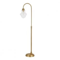 Bring a touch of modern elegance to your living room or bedroom with this arc floor lamp made in either a classic bronze finish or glam brass. The arc of the lamp leads to a beautifully shaped teardrop shade made in clear glass that adds sophistication and warm lines to the design of your home. Illuminate your space in style.