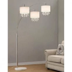 Palace 83 in. Chrome Finish 3-Light Crystal Pendants Arch Floor Lamp with White Shades by HomeGlam
