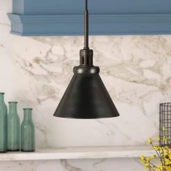 Zeno 8.5 in. Blackened Bronze/Blackened Bronze Semi-Flush Mount with Metal Shade by Meyer&Cross