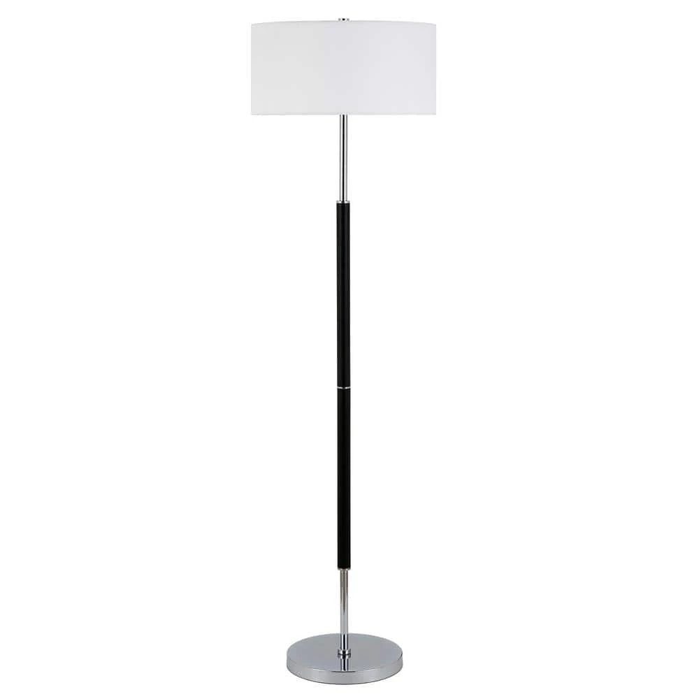 This black and polished nickel floor lamp helps to create a glamorous and stylishly fashionable space. It features a designer-style linen shade which is sure to elevate any space. Its French drum shade allows for a classic look anywhere.