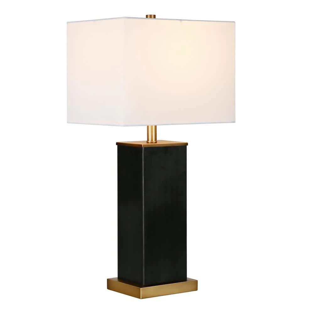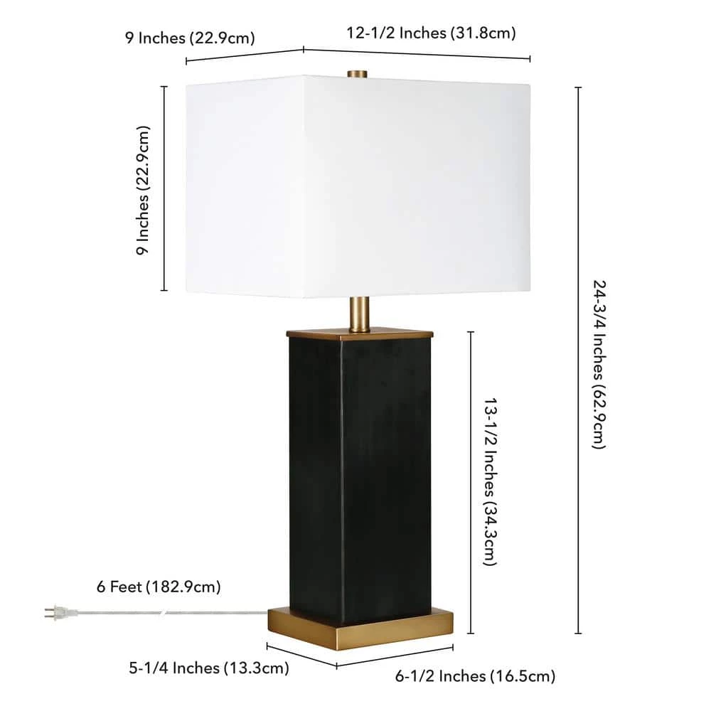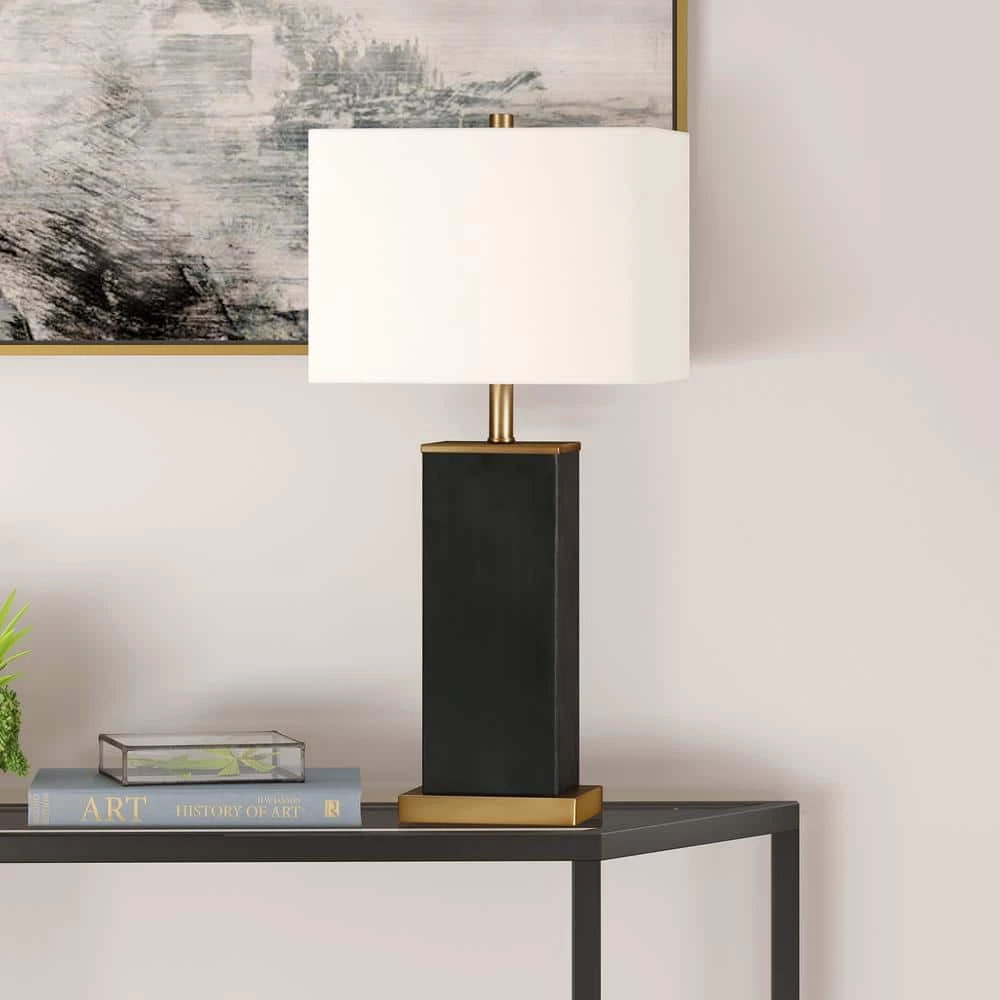 Bring a touch of classic Art Deco style to any room with this substantial table lamp. The hand-painted blackened bronze pedestal base is perfectly highlighted with on-trend brass accents to add a pop of warm metallic tones. The crisp French drum shade keeps the look modern and clean.