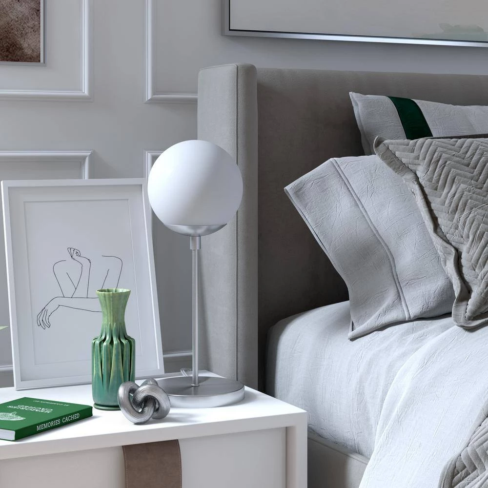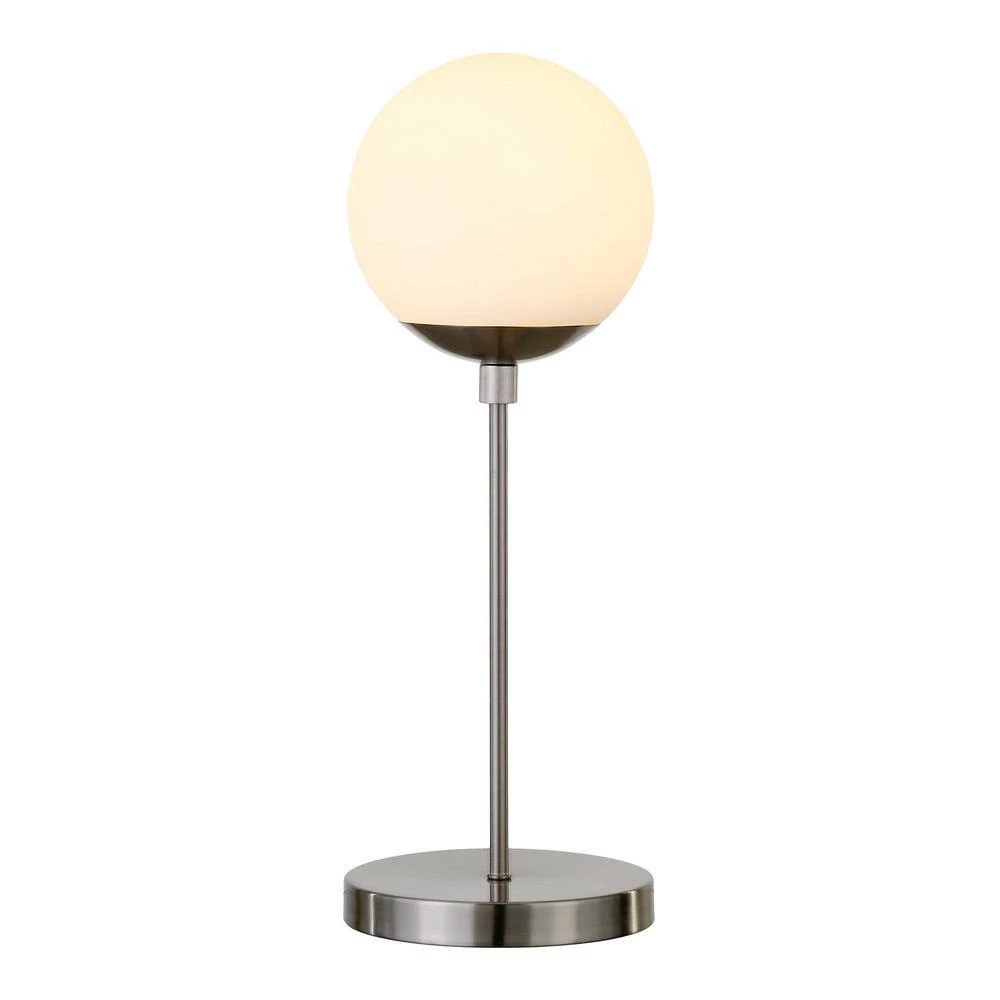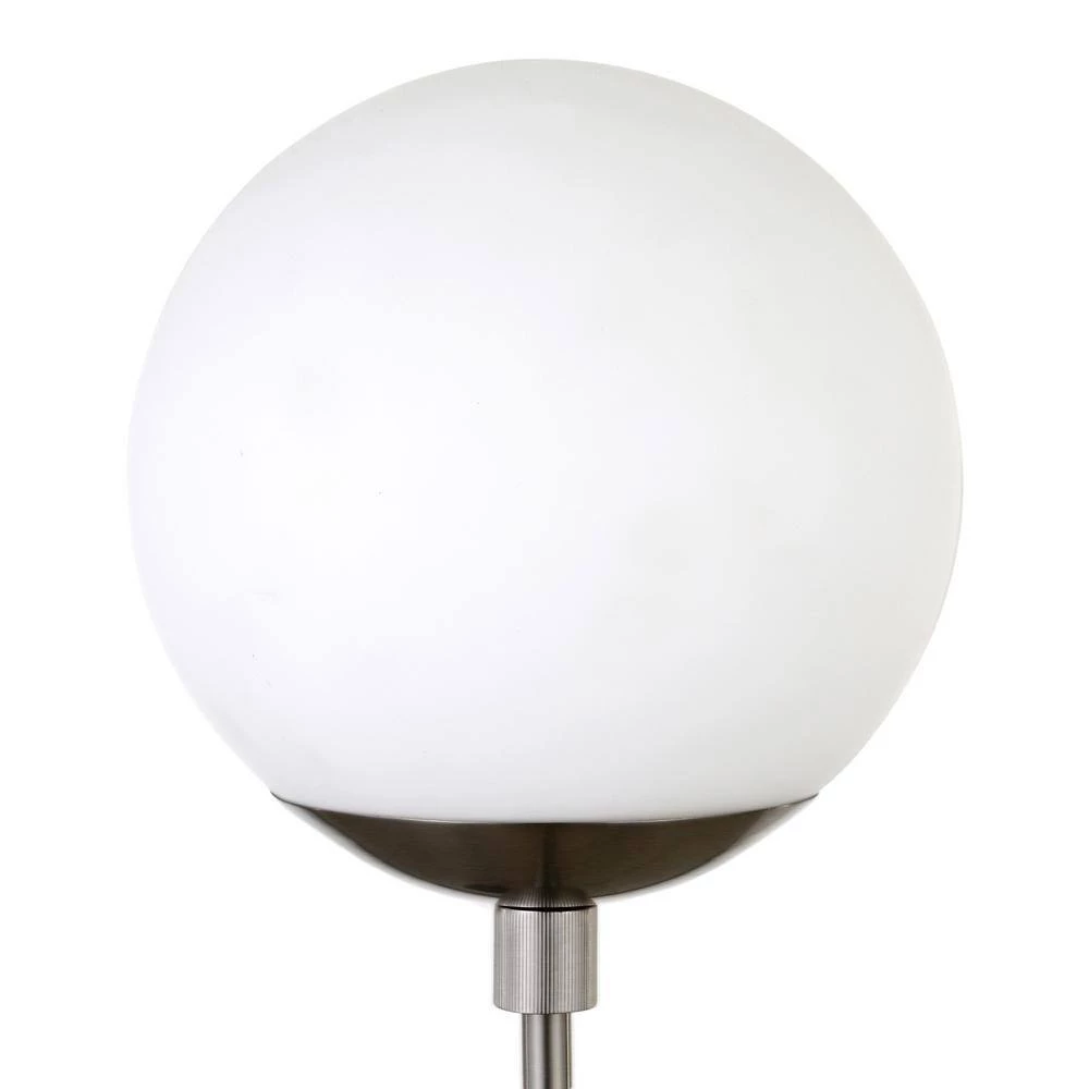 This globe and stem style lamp adds an airy feel to any room. The glass sphere diffuses light gently into your space, creating an elevated style. The satin nickel base complements the sleek orb shade with a clean, glamorous and contemporary look. Refresh any room with this modern yet consumable floor lamp.