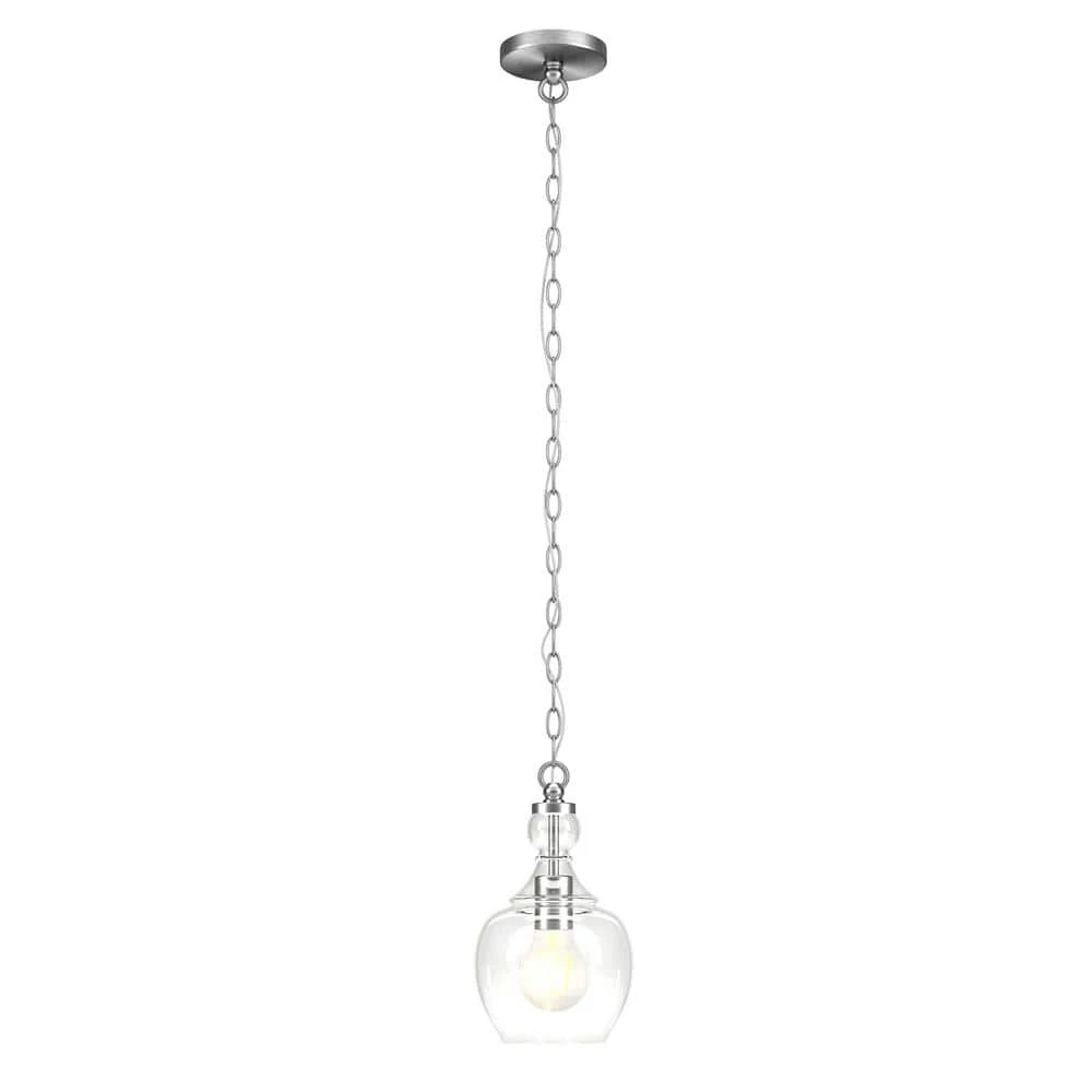 With a style inspired by the industrial revolution but appropriate for a coastal beach cottage, this pendant light is a chic update on a classic look. The domed glass shade is complemented with warm metallic accents that pair effortlessly with your existing color scheme. The hanging chain is fully adjustable to a length of up to 6 ft., allowing you to customize the fixture to your unique space.