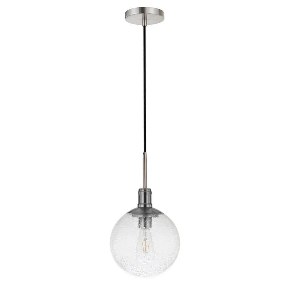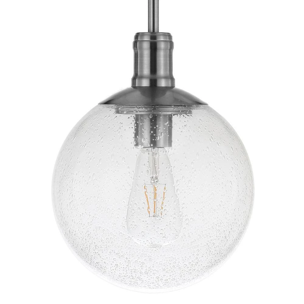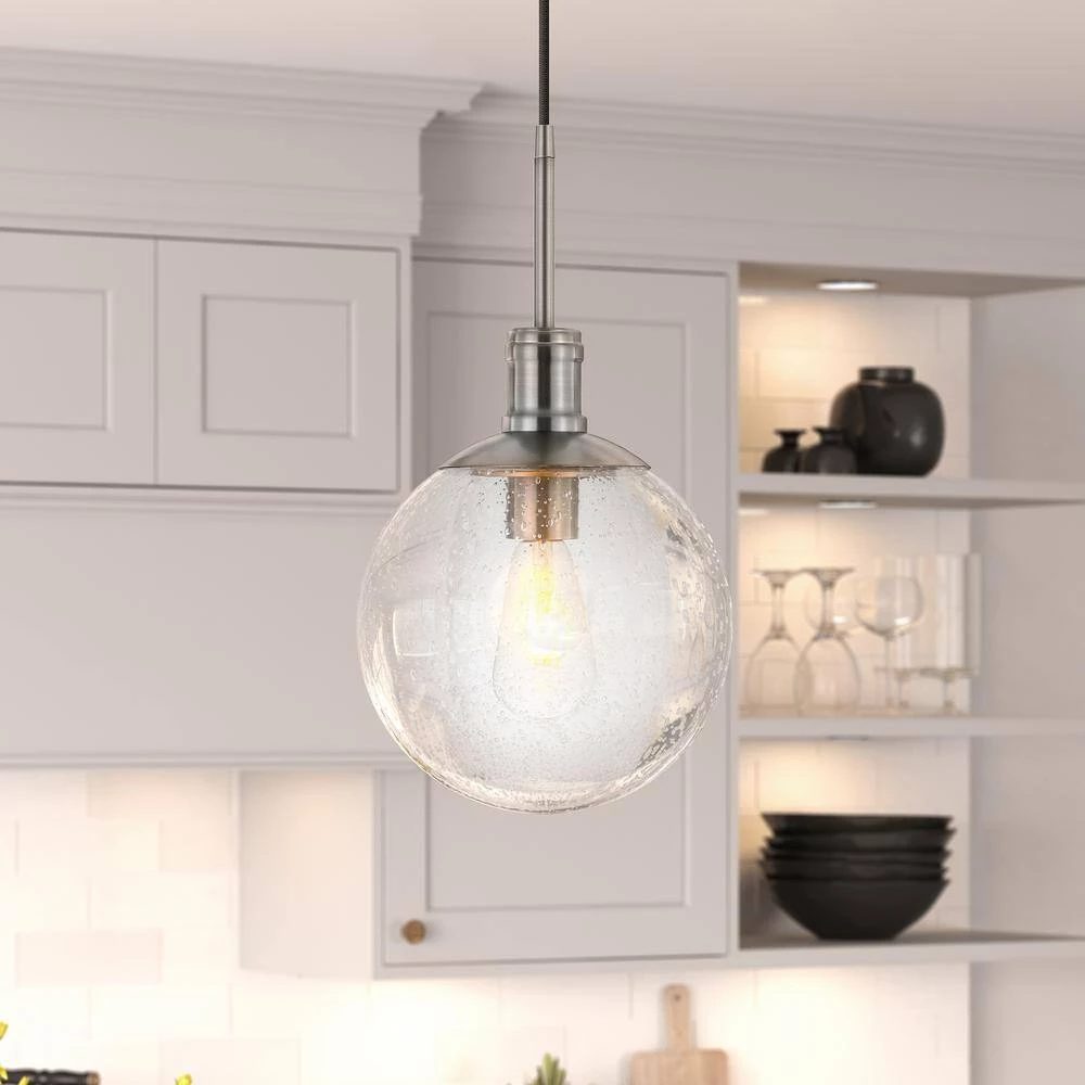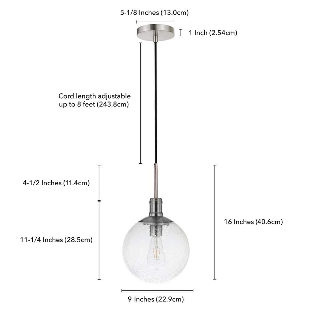 Minimalist mid-century design meets modern farmhouse chic with this simple, yet dynamic pendant. The warm neutral finishes blend easily into any color palette, while the seeded glass globe shade lends an organic feel to the piece. The 8 ft. adjustable cord lets you customize this fixture to fit your space perfectly.
