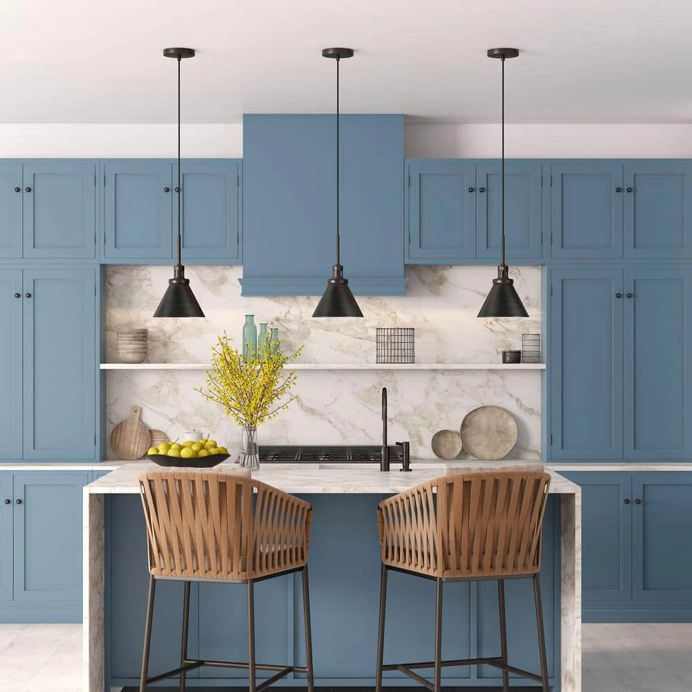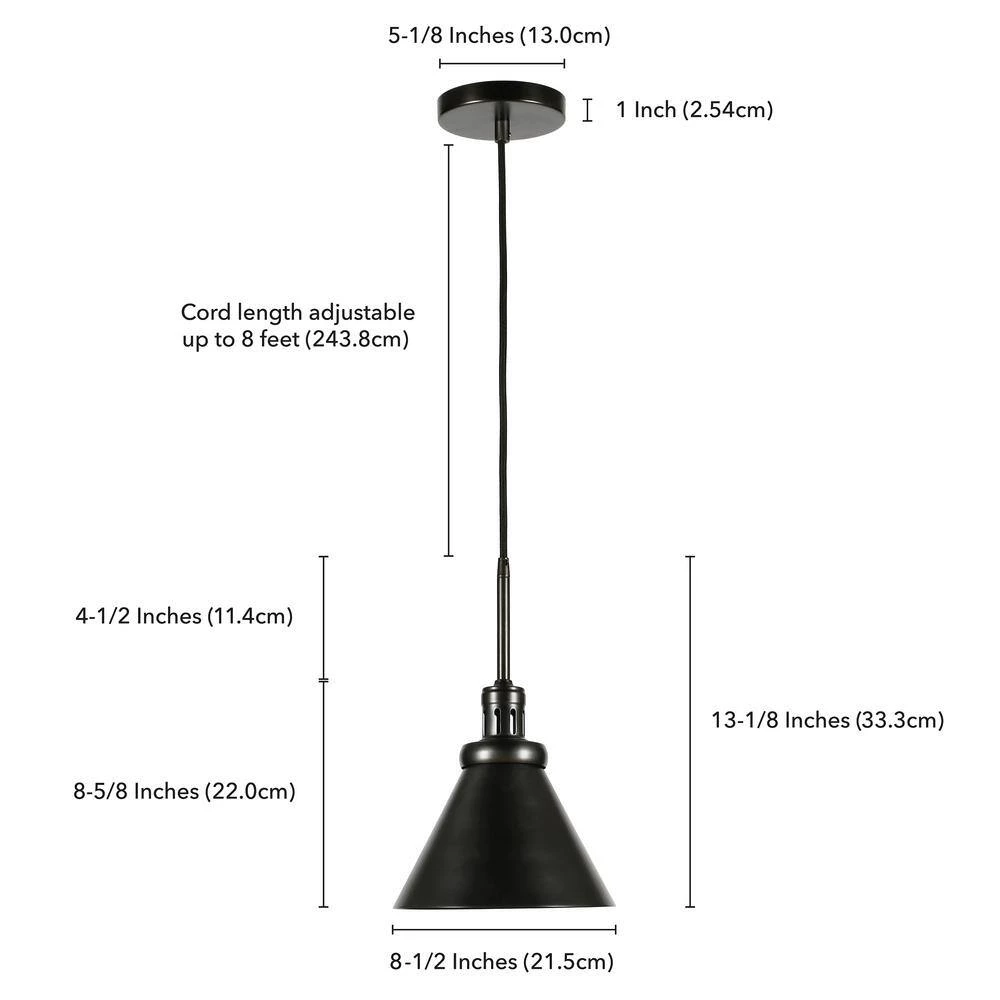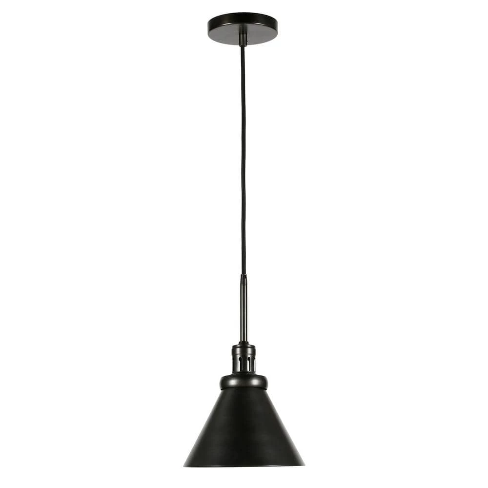 This industrial pendant light is perfect for illuminating your entryway, dining room or kitchen island. Featuring a cone-shaped shade, this traditional hanging light is crafted from metal in a sleek blackened steel finish for a retro-inspired design. The 8 ft. adjustable cord lets you customize this fixture to fit your space perfectly.
