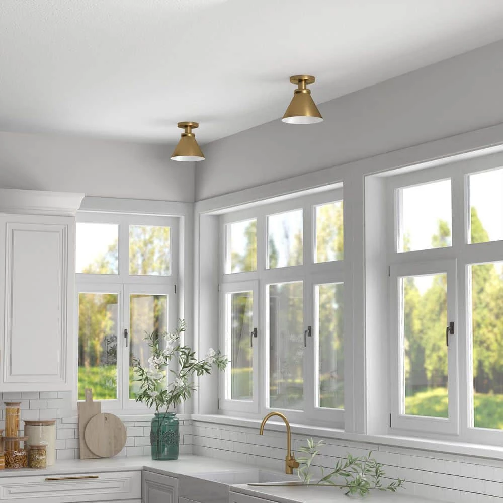 This industrial semi-flush mount light is perfect for illuminating your entryway, dining room or hallway. Featuring a cone-shaped shade, this traditional ceiling light is crafted from metal in a handcrafted finish for a retro-inspired design. This fixture can blend in or stand out in many decor style and color schemes.